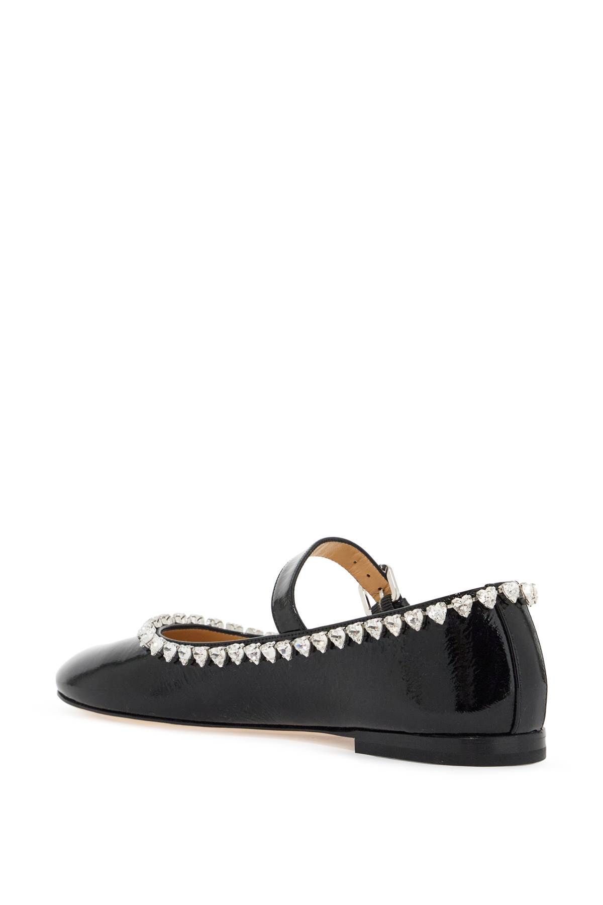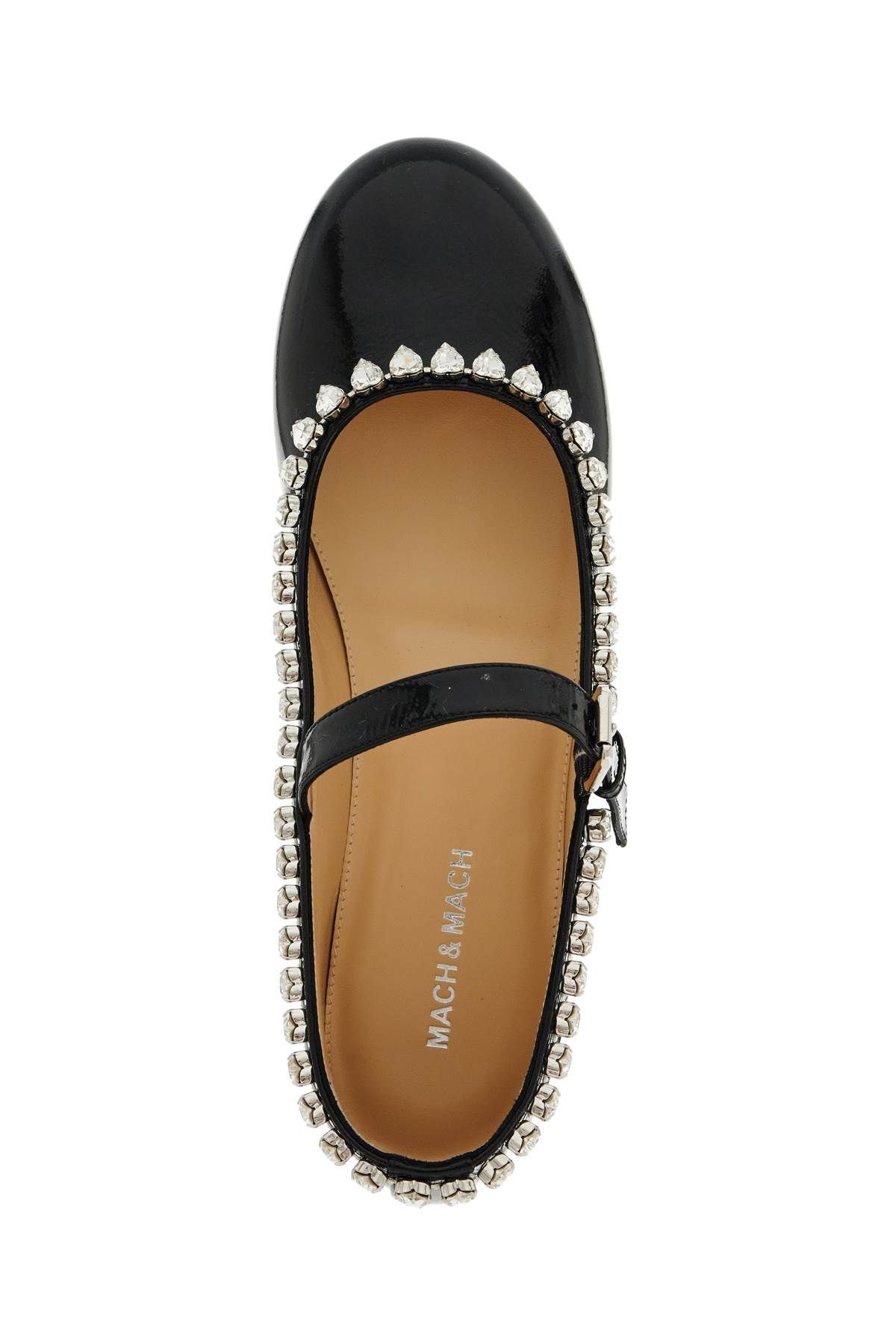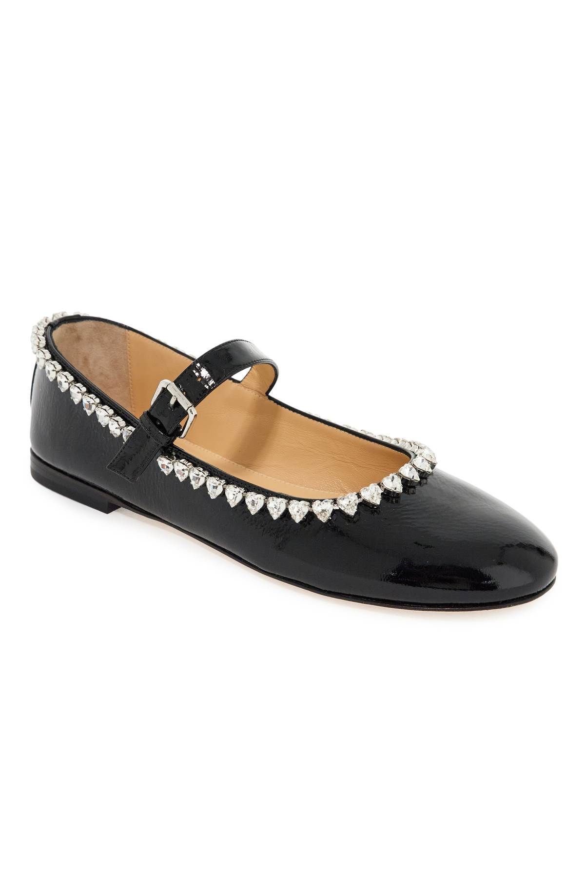 The Audrey ballerinas by Mach & Mach are made of patent leather and embellished with heart-shaped crystals applied along the entire edge