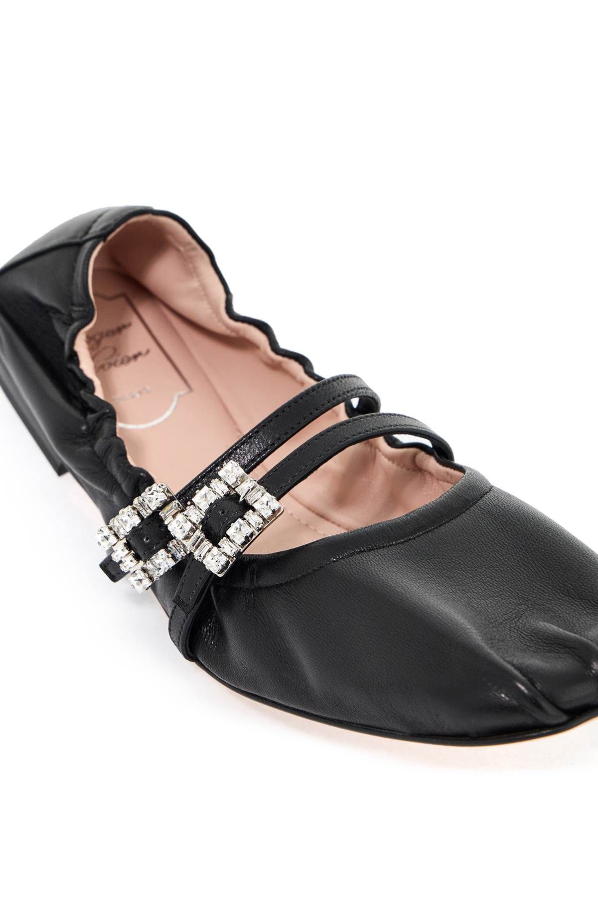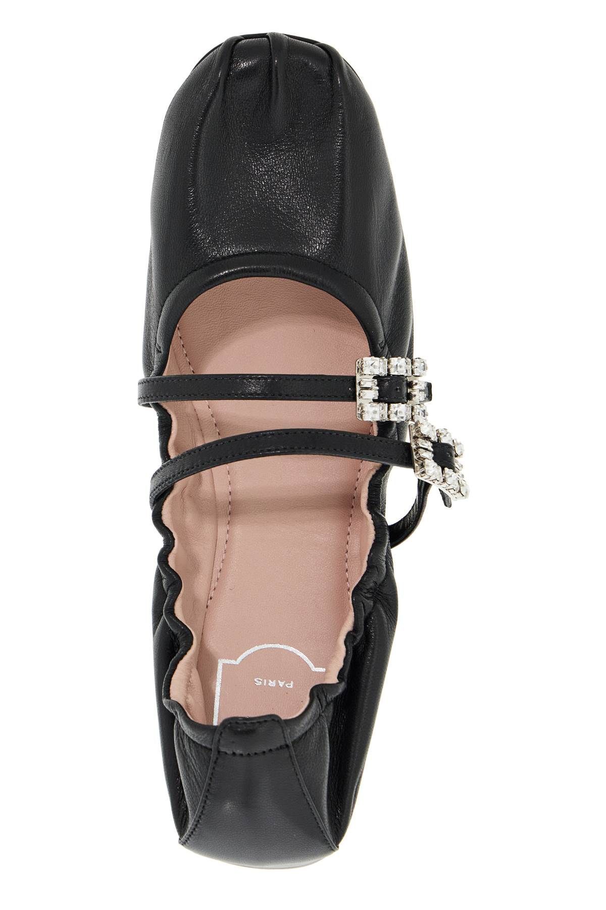 Crafted in soft nappa leather with a stretch profile, these Roger Vivier ballerinas feature two adjustable straps adorned with crystal buckles