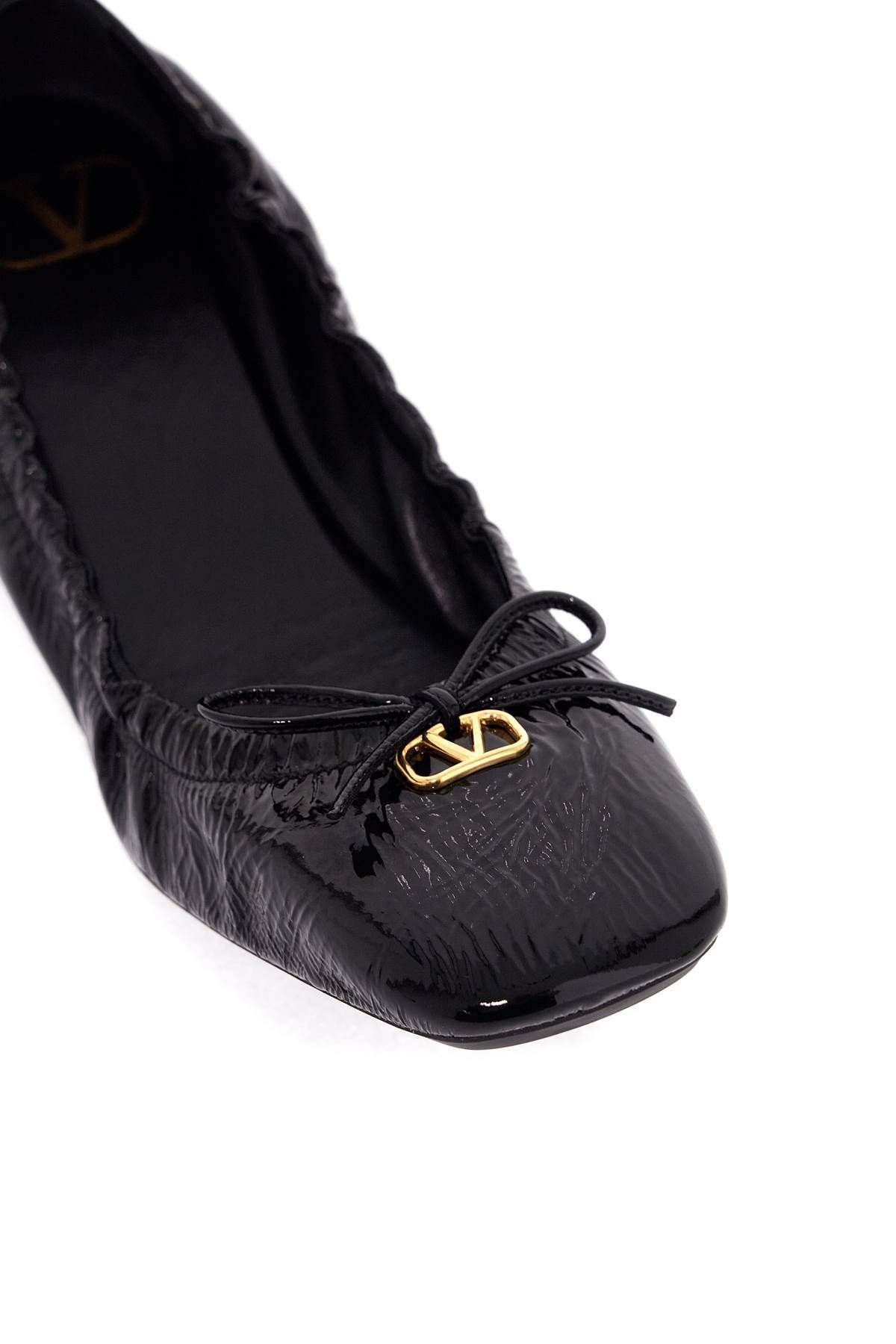 Valentino Garavani ballerina flats made in Venice with ruffled edges, VLogo Signature brass finish with antique effect and leather bow applied on the toe