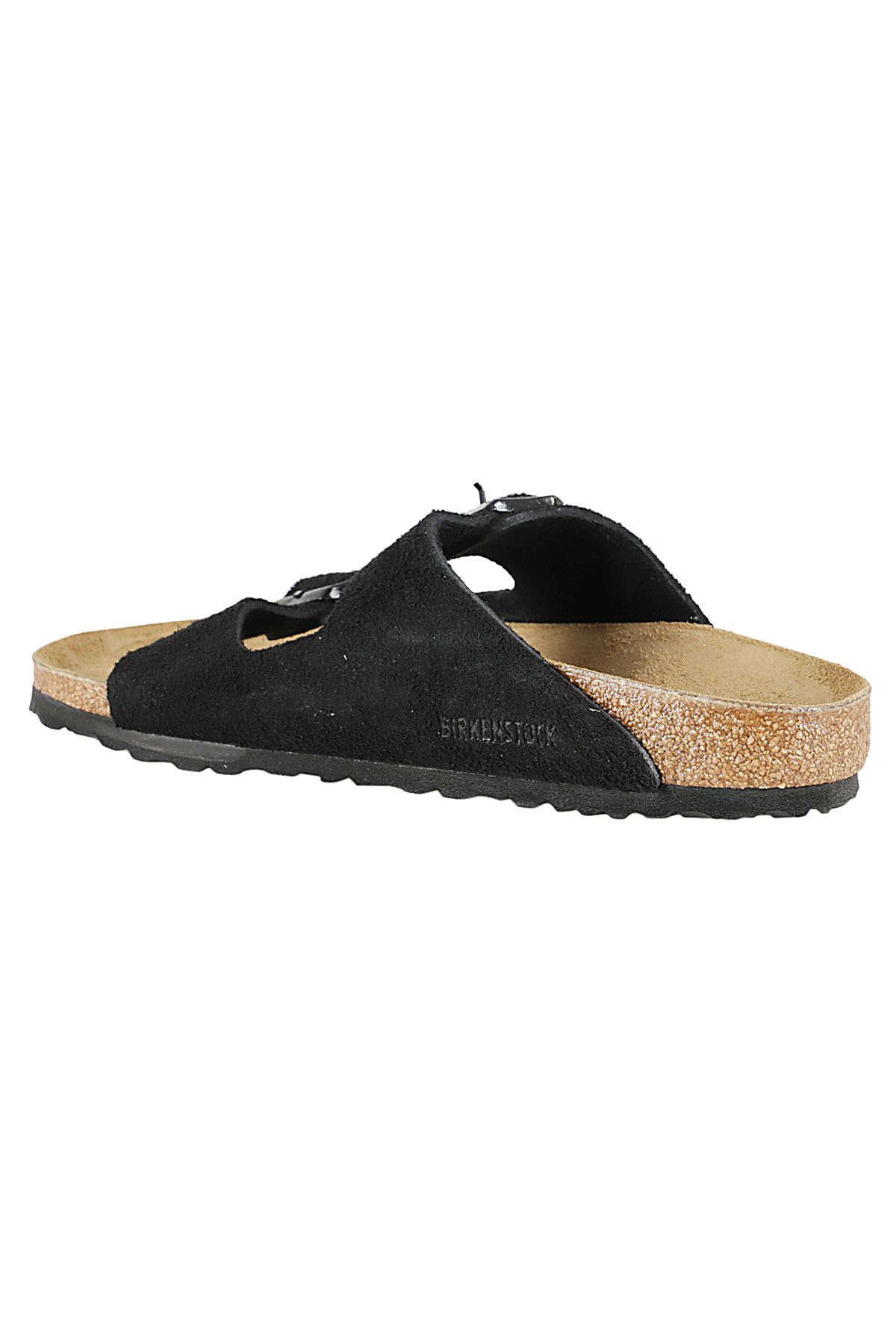 - Birkenstock - Black color- Arizona model- Suede leather material- Adjustable straps detail with metal buckle- Rounded toe- Logo on buckle and side engraved- Reinforced sole