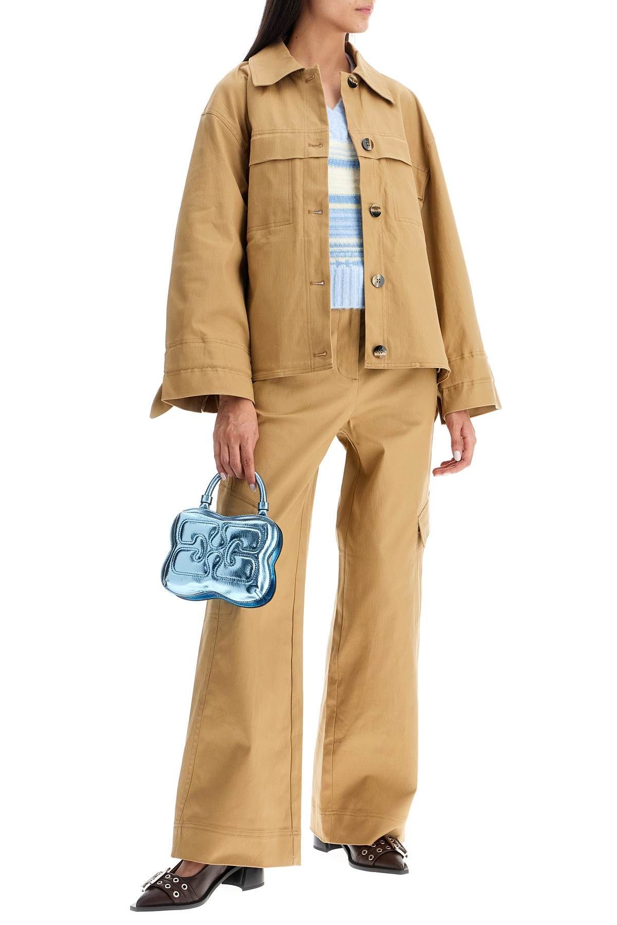 The Ganni casual jacket has an oversized fit and is made of organic stretch cotton twill