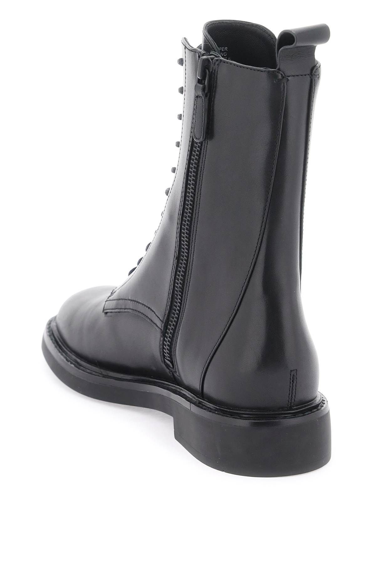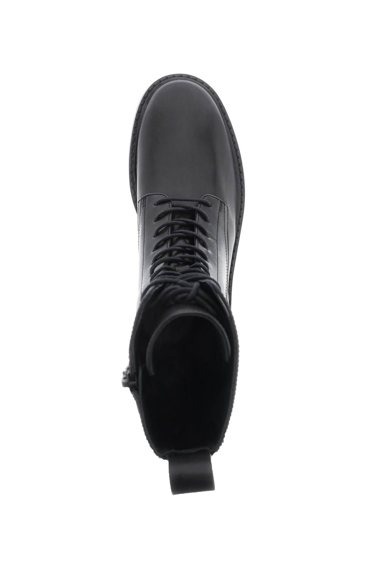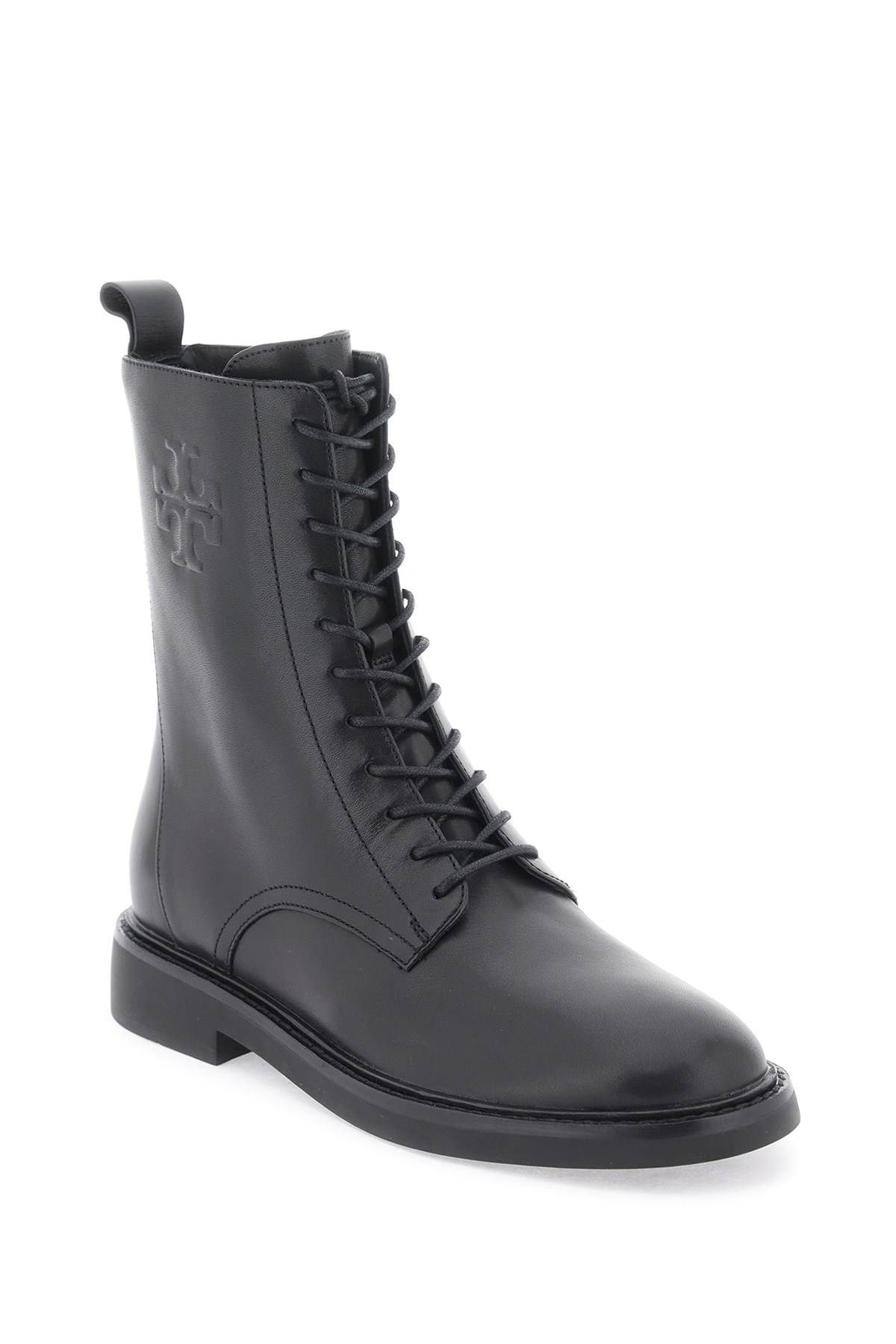 Leather lace-up combat boots by Tory Burch with iconic embossed Double T