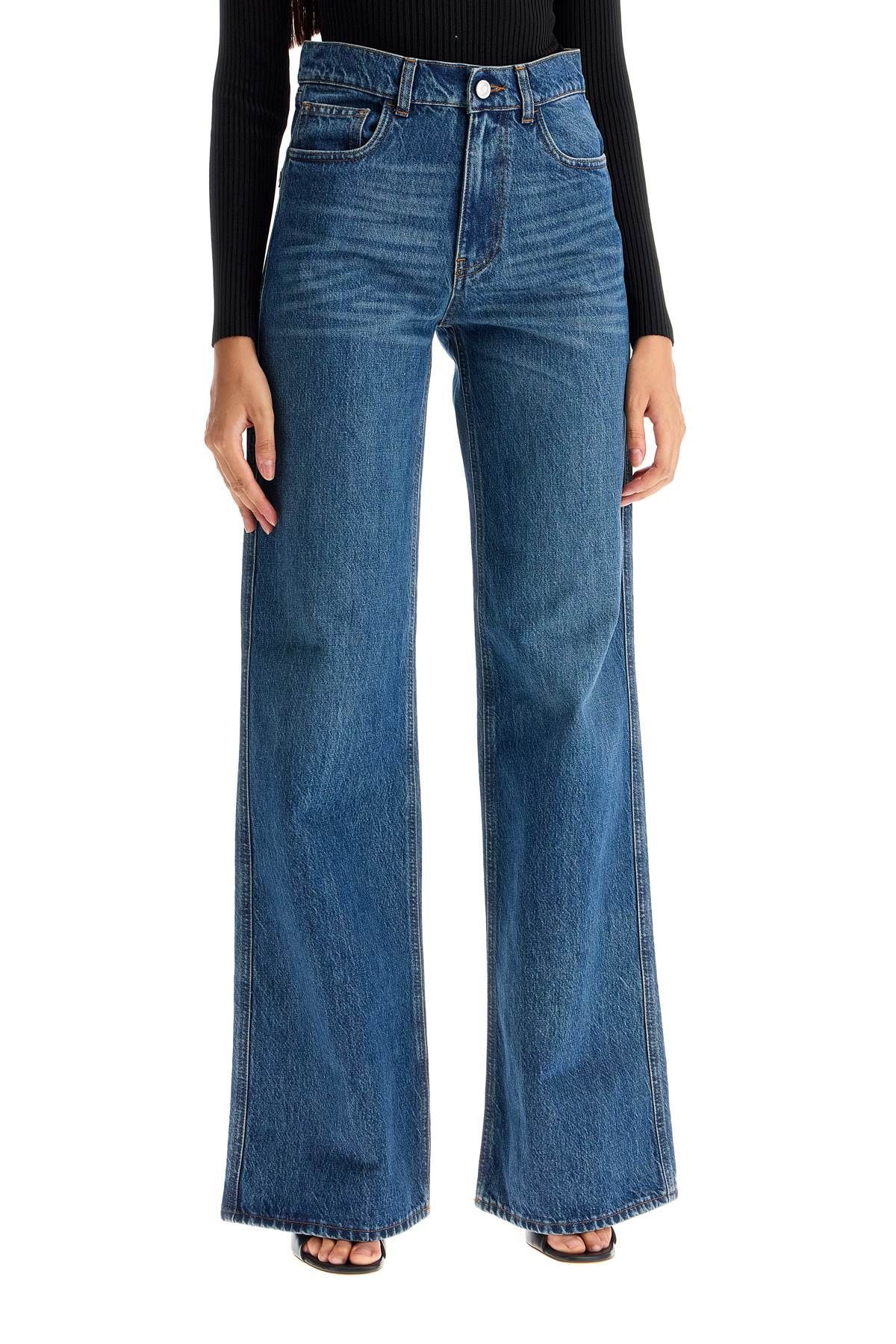 High-waisted Coperni jeans in vintage wash denim, featuring a wide leg silhouette