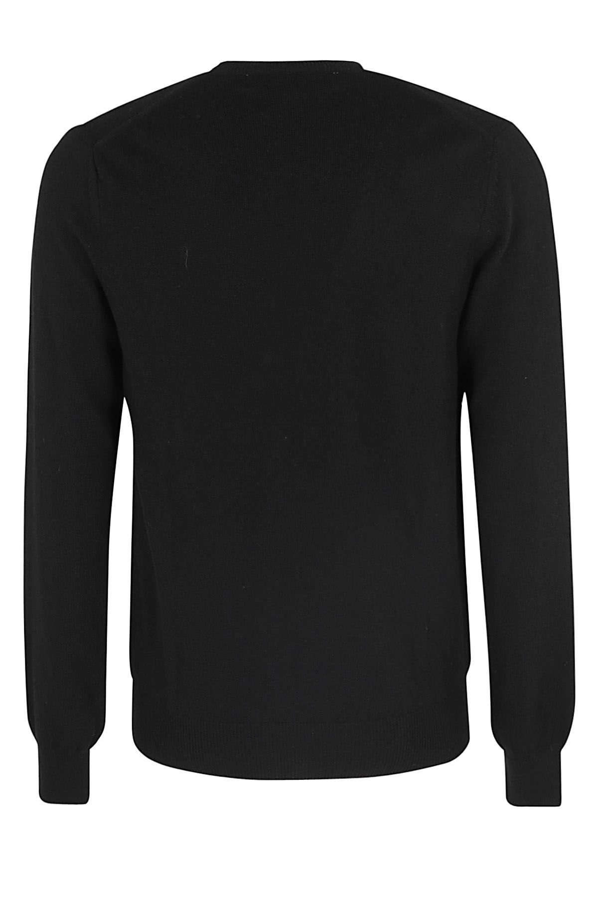 - Sweater- Comme Des Garcons Play- Wool- Black color- V-neck, long sleeve- Contrasting side logo