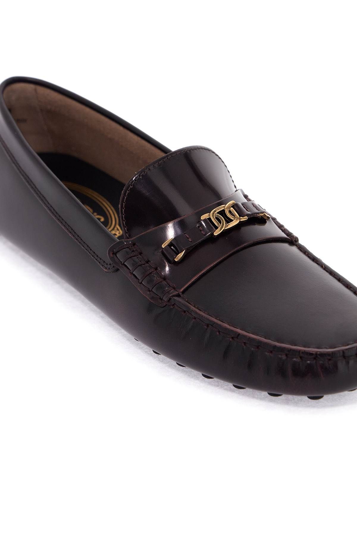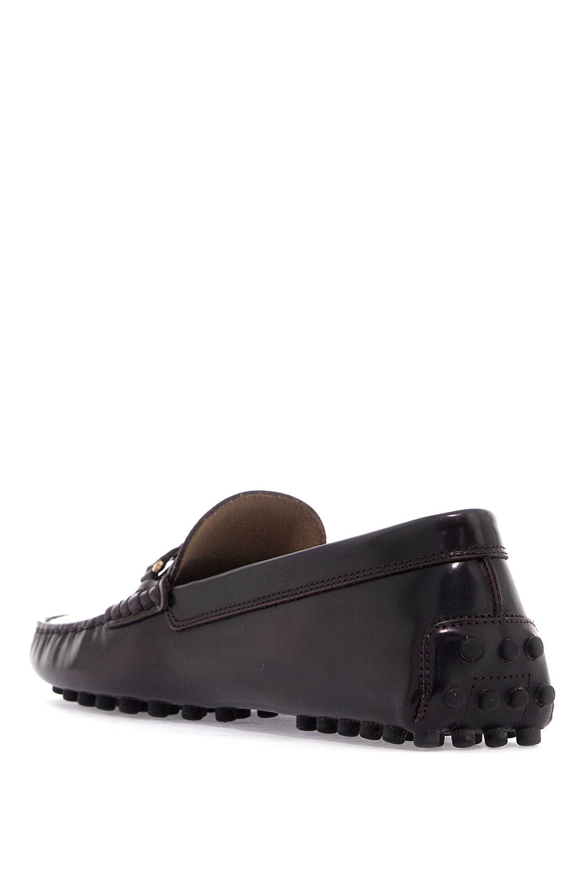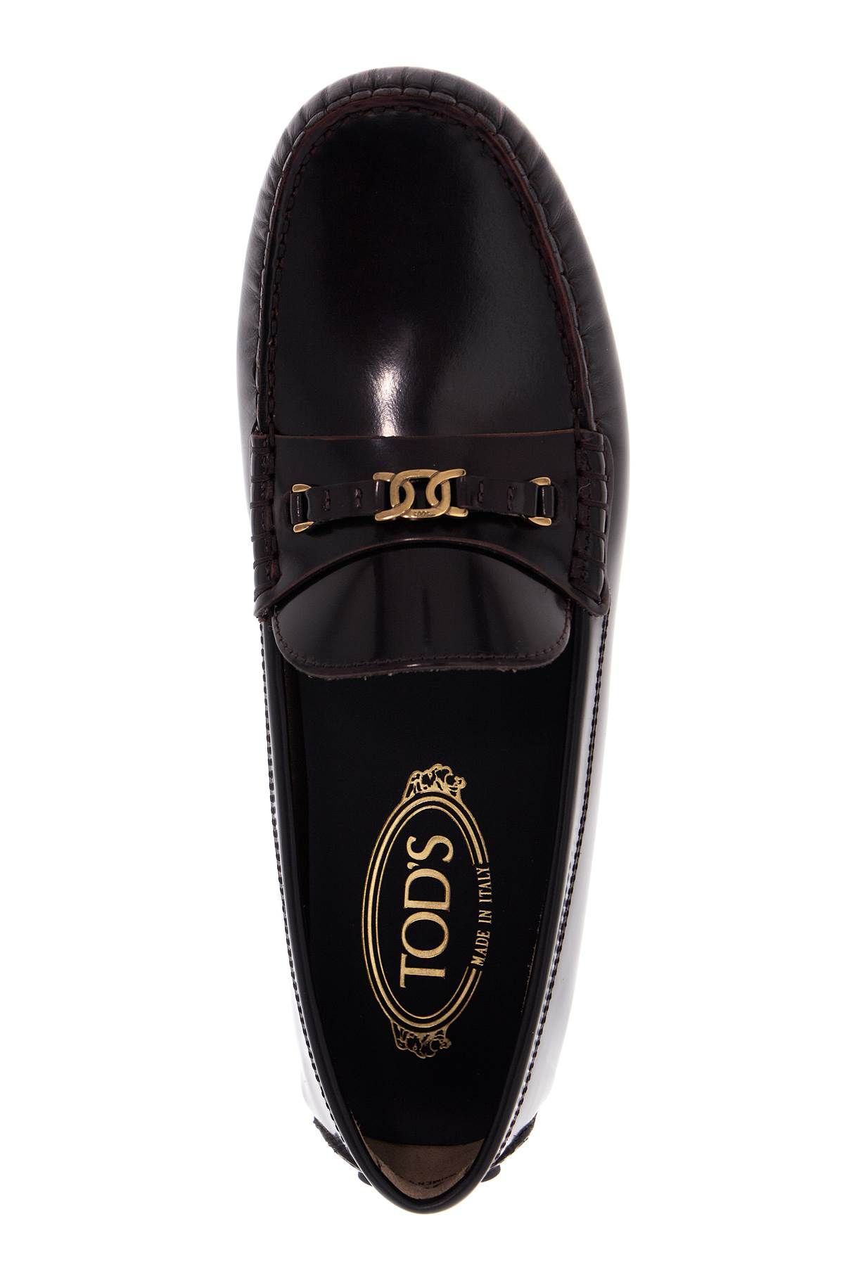 Tod's loafers made of brushed leather with a small gold chain detail applied on the vamp