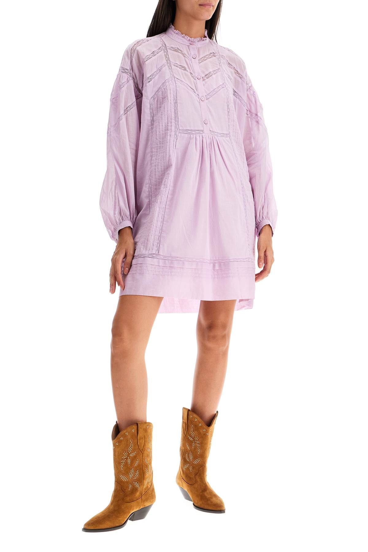 The Galia mini dress by Marant Etoile is made of cotton voile and lace, featuring a mandarin collar and front button closure