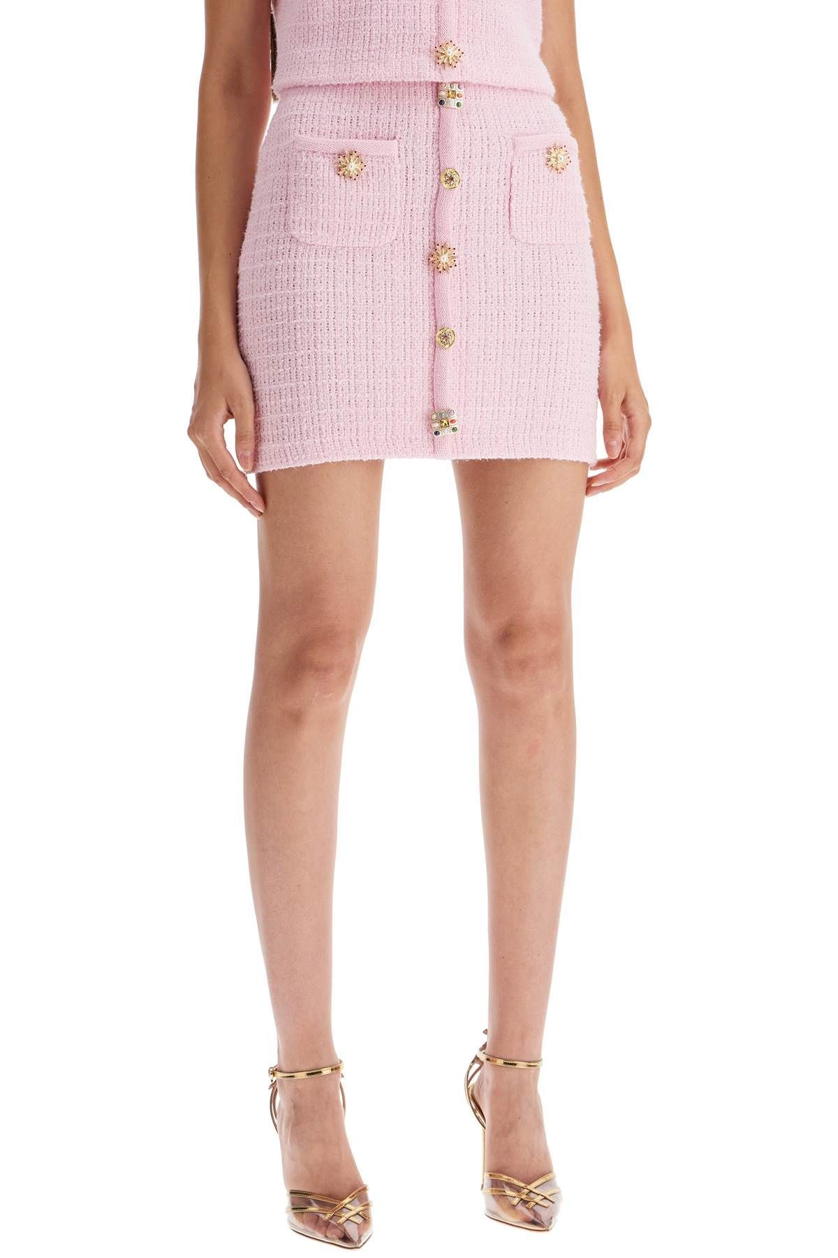 This Self-Portrait miniskirt is made of a blend of cotton and viscose knit, embellished with micro sequins and adorned with decorative jewel buttons on the front
