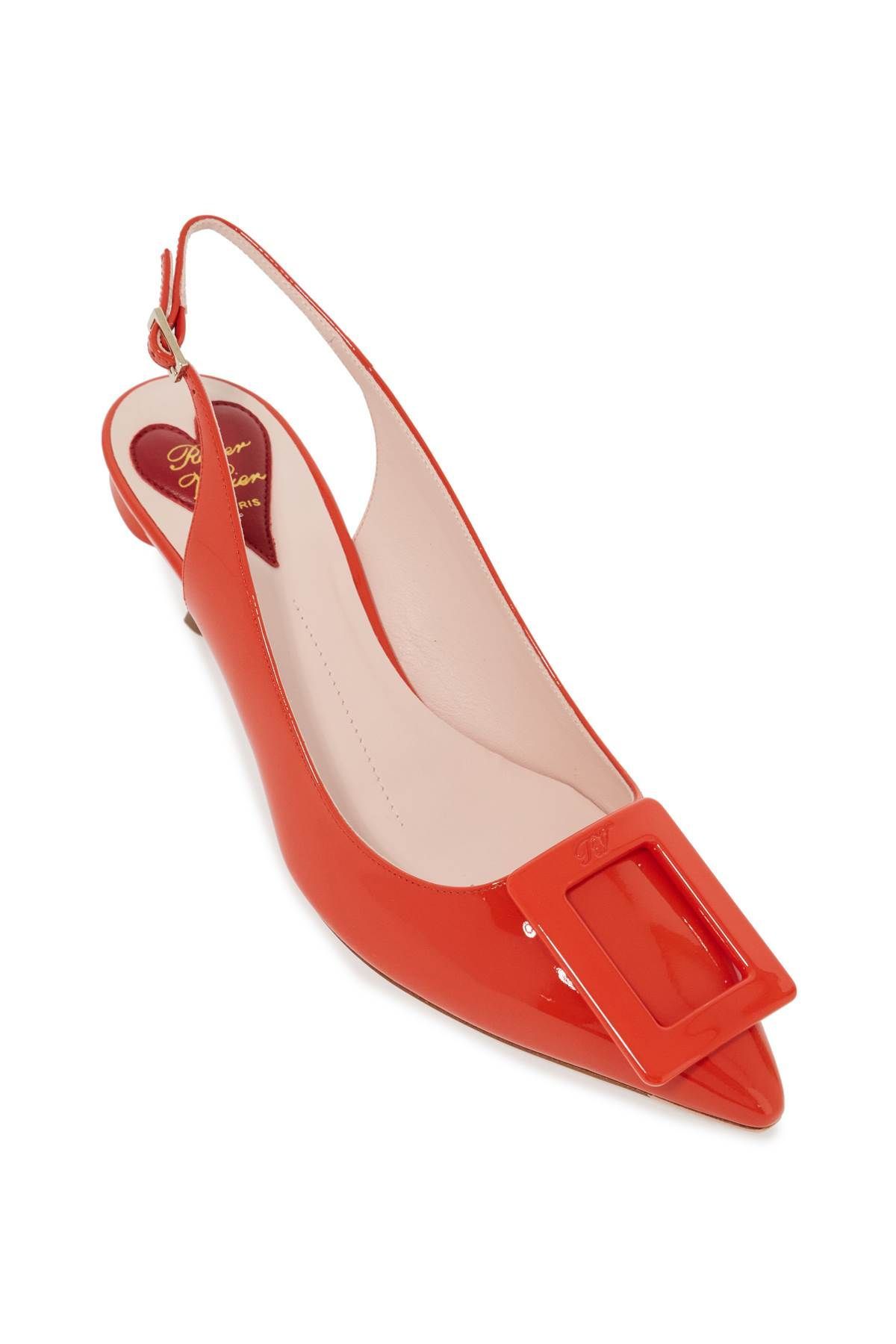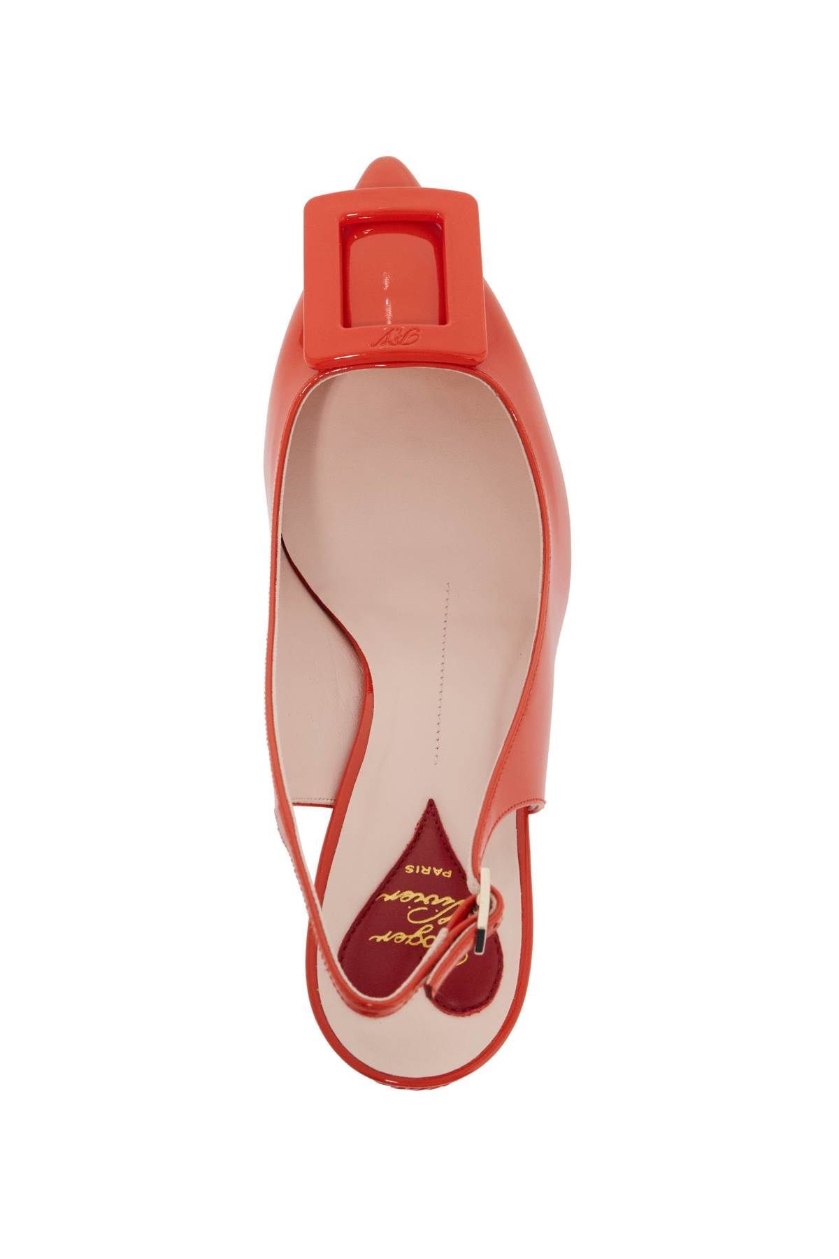 Handcrafted in patent leather, the Decollete slingback Virgule by Roger Vivier is a true statement piece