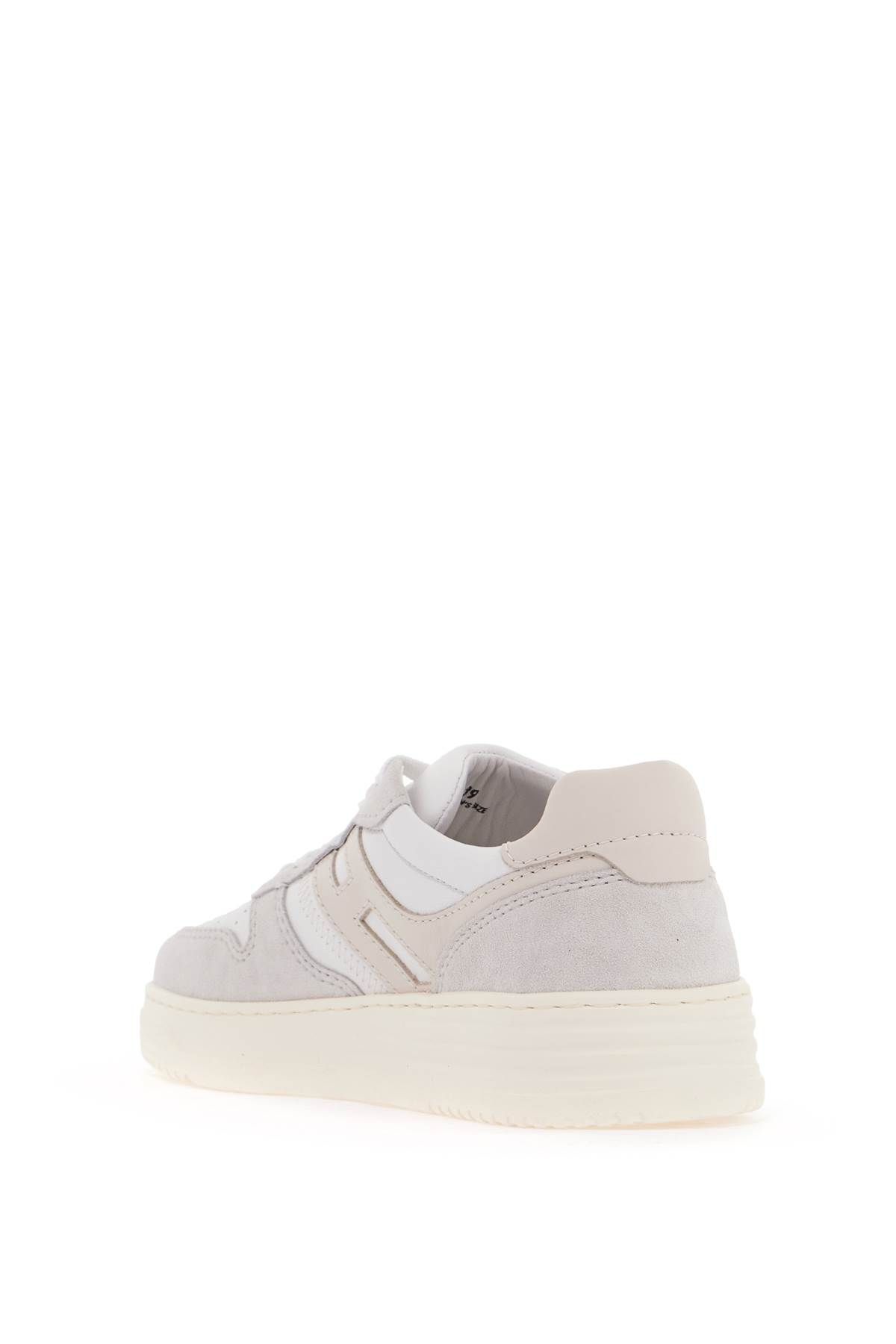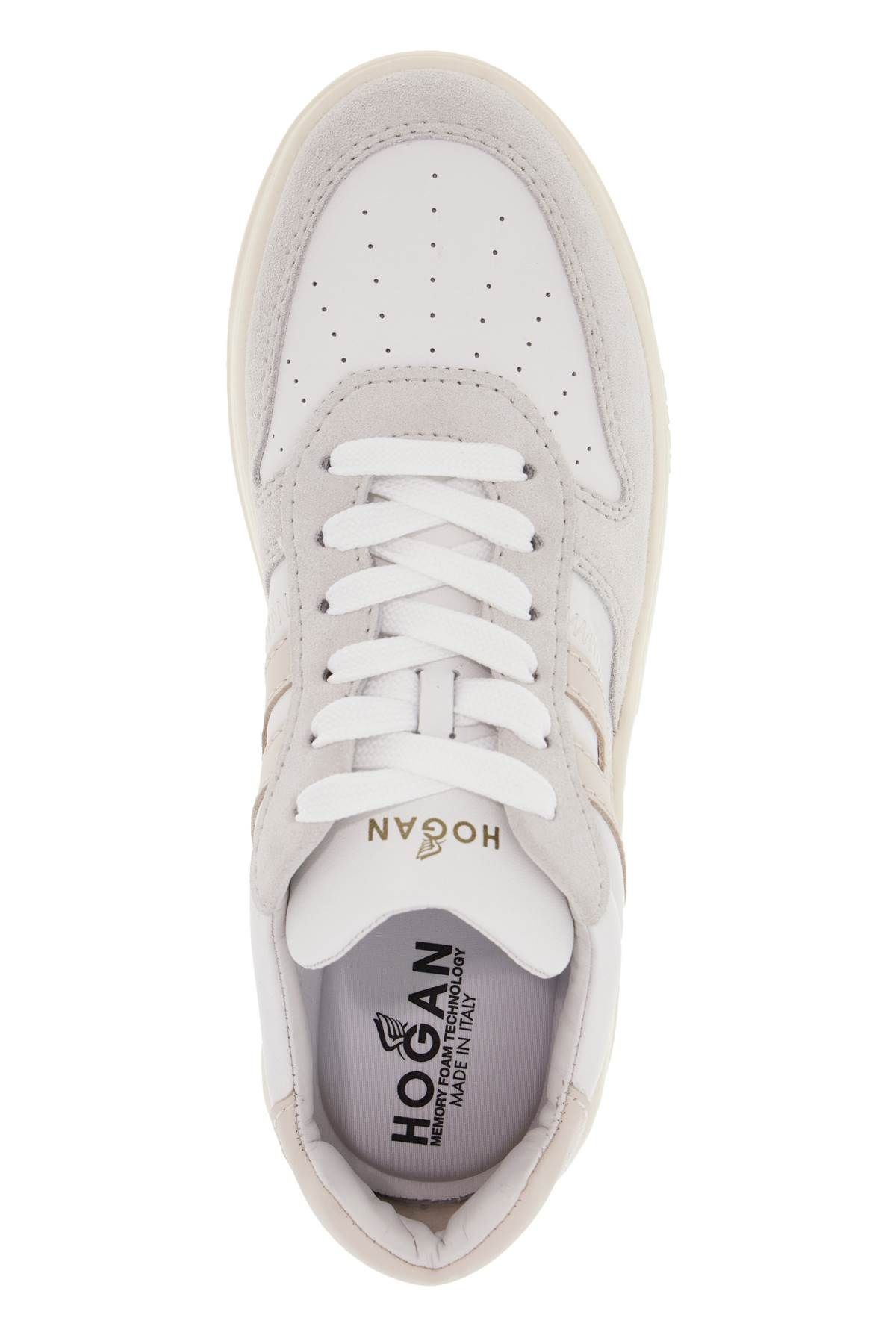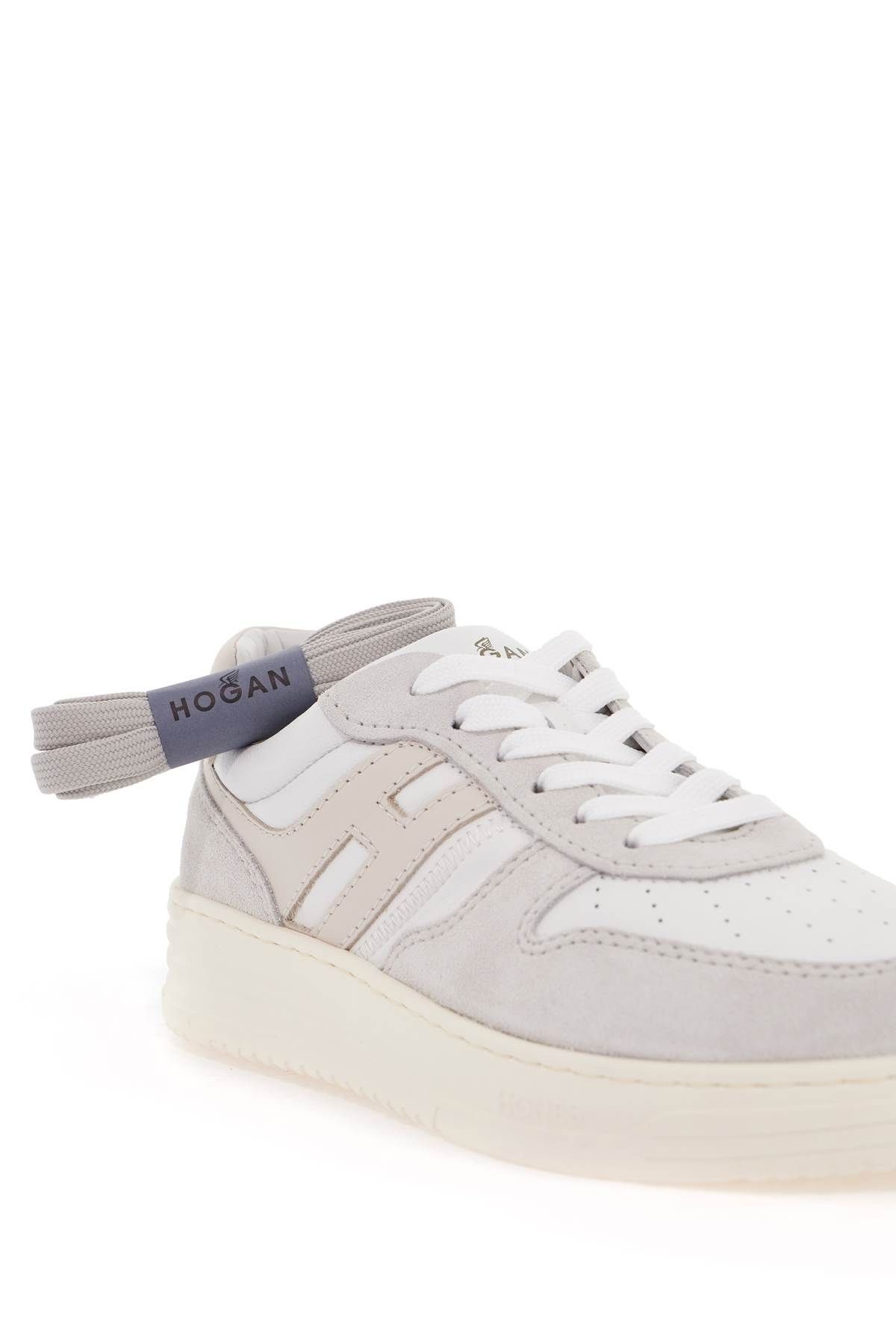 The H630 sneakers by Hogan are made of smooth and suede leather with an elongated H that wraps around the heel