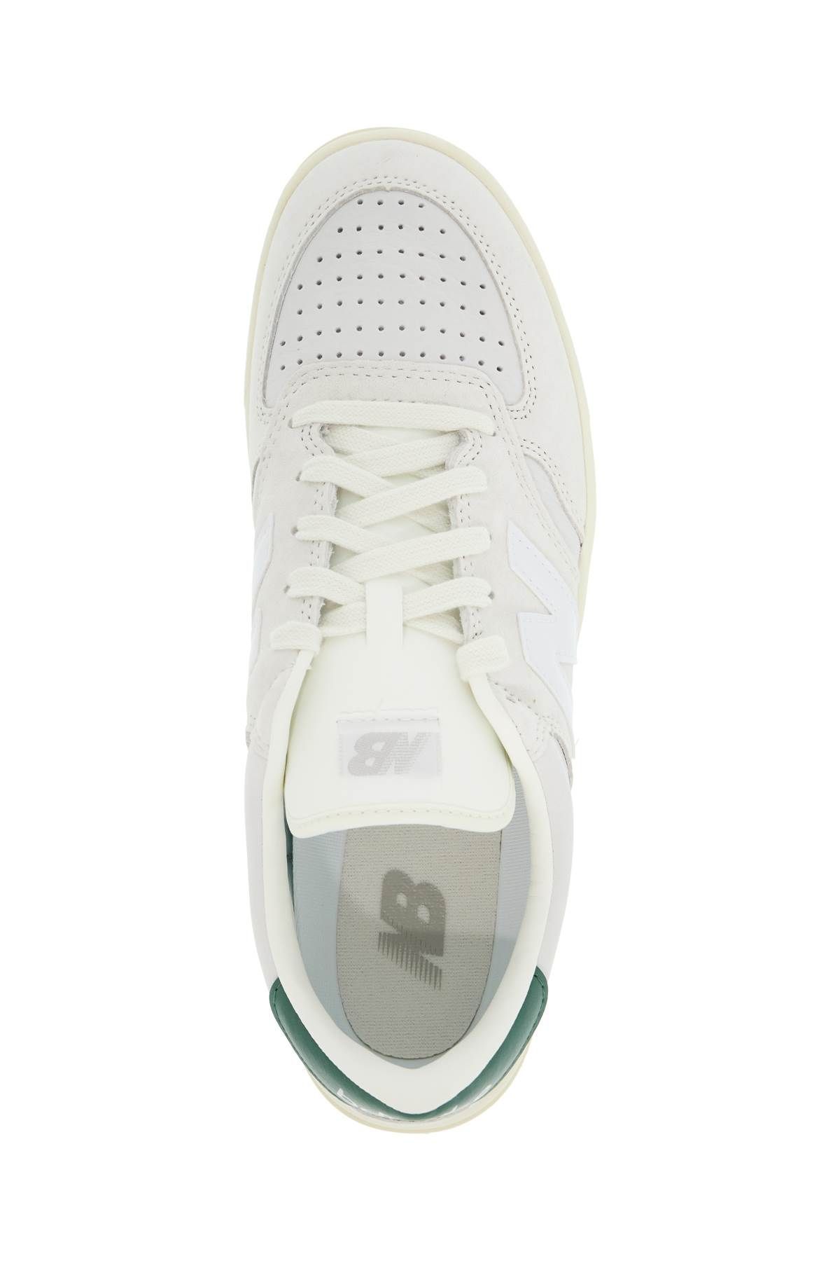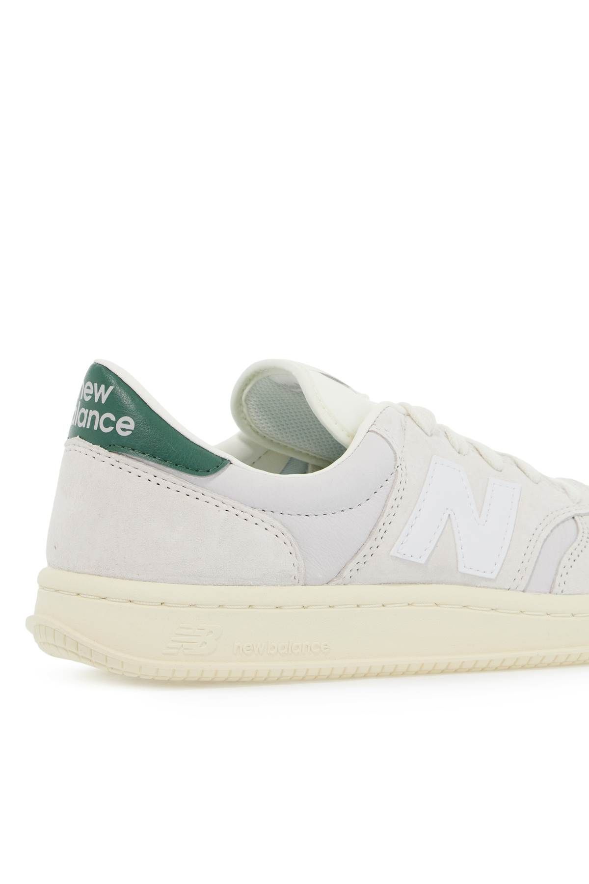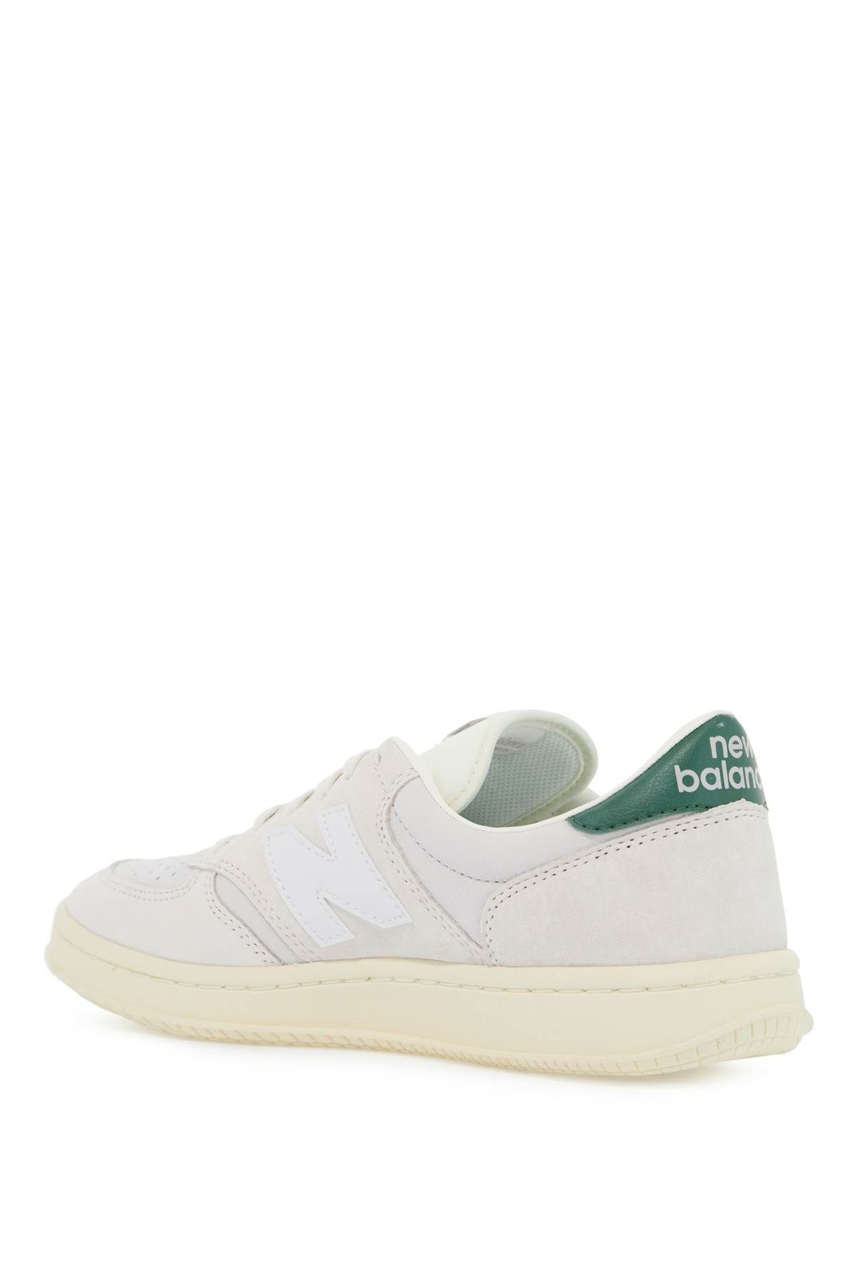 The T500 sneakers by New Balance are made of suede and nubuck leather, featuring the iconic smooth leather N on the side