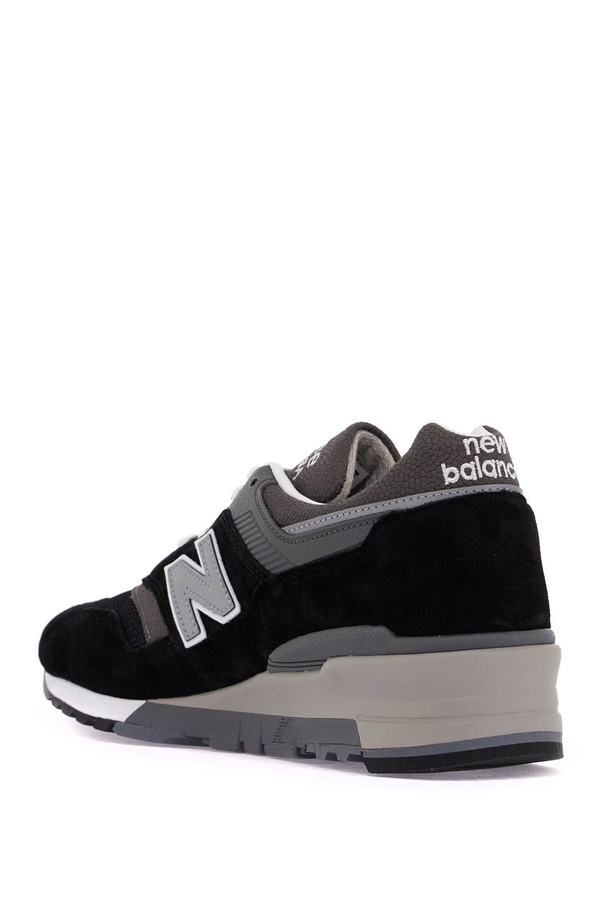 The New Balance 997 sneakers feature a layered construction made of suede and hammered leather, rubber, and mesh