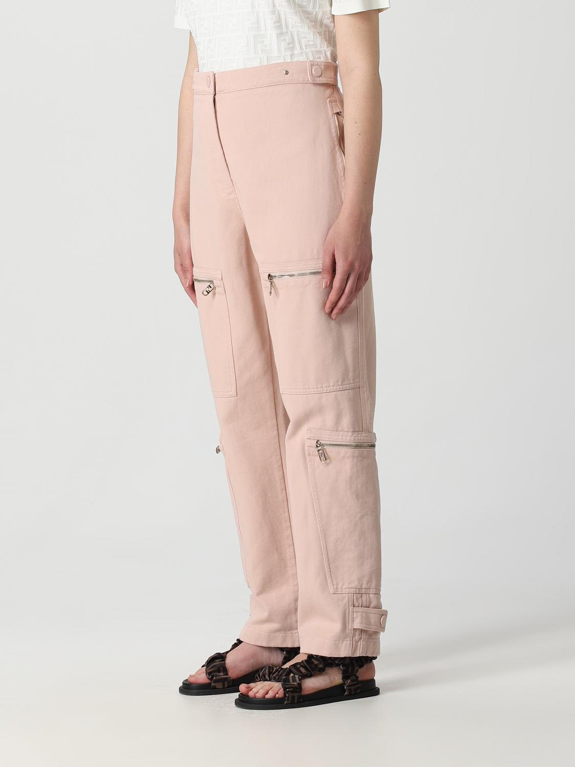 - Casual style - Regular fit - Cargo model - Cotton drill - High waist with adjustable straps - Snap button and zip closure - 4 zipped pockets - Fendi O'Lock cursor - Straight leg - Adjustable straps on the bottom - Straight hemline - Made in Italy