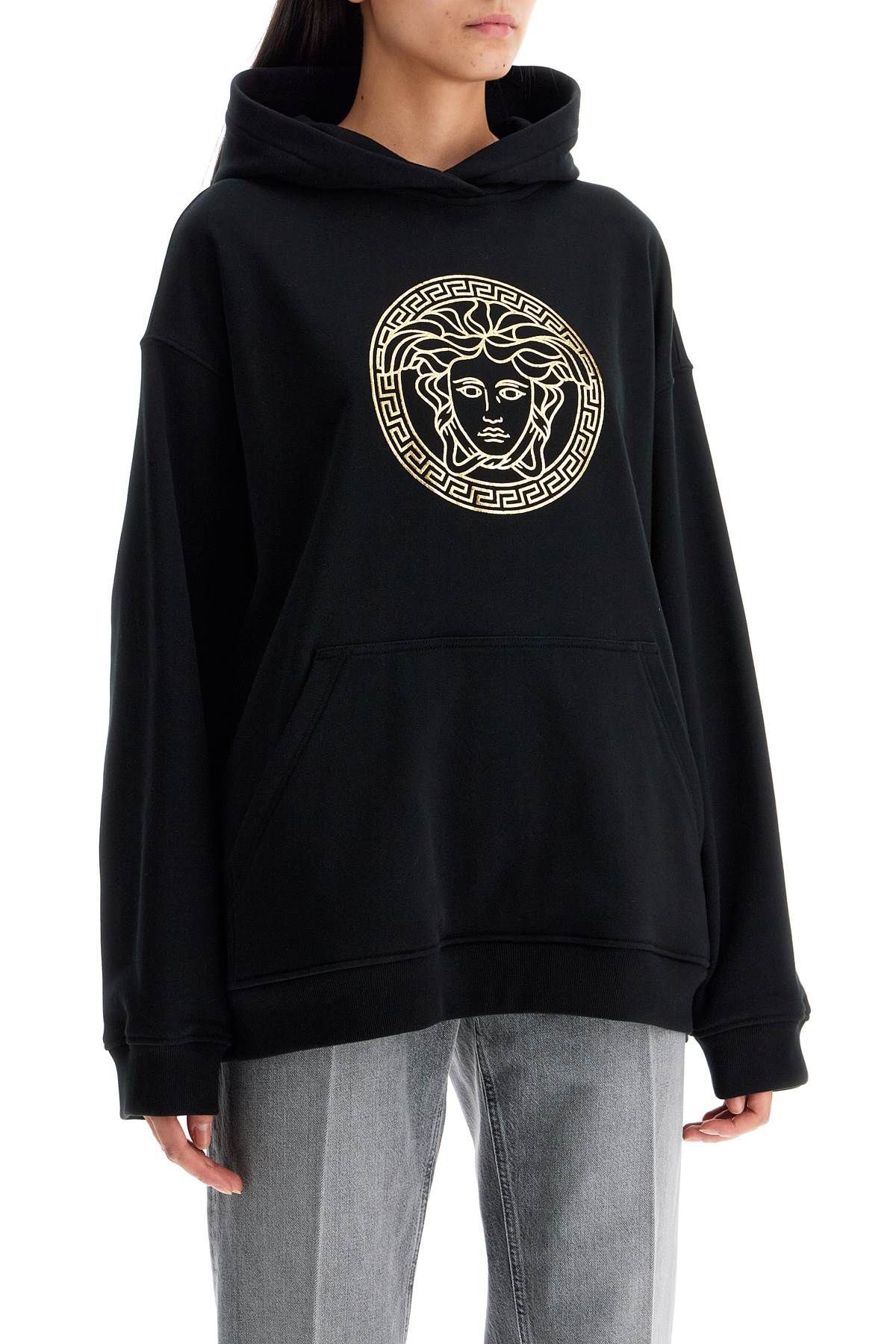 Versace hoodie in cotton jersey with a gold laminated Medusa motif on the front