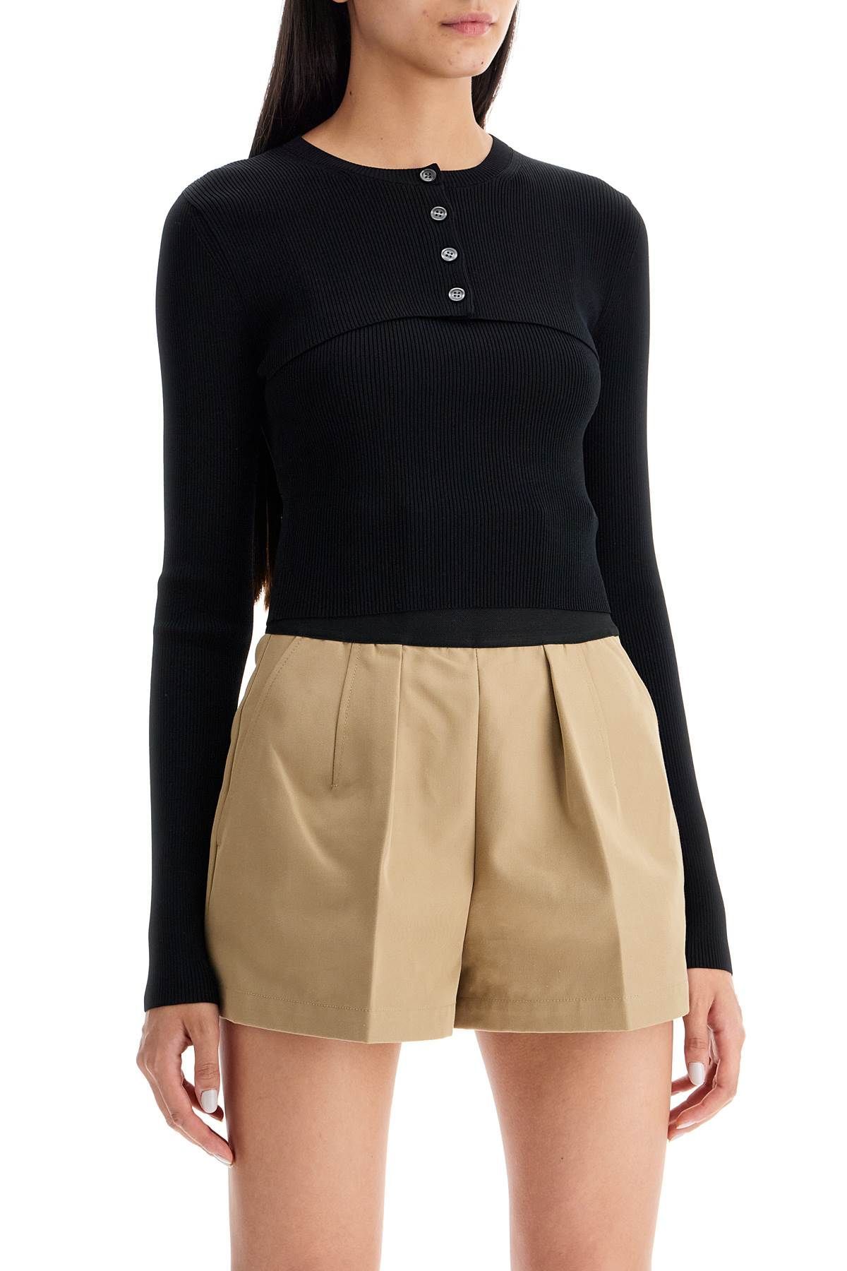 The Alexander Wang twin-set is made of ribbed stretch fabric and includes a short top and a super-cropped cardigan, both with a fitted silhouette