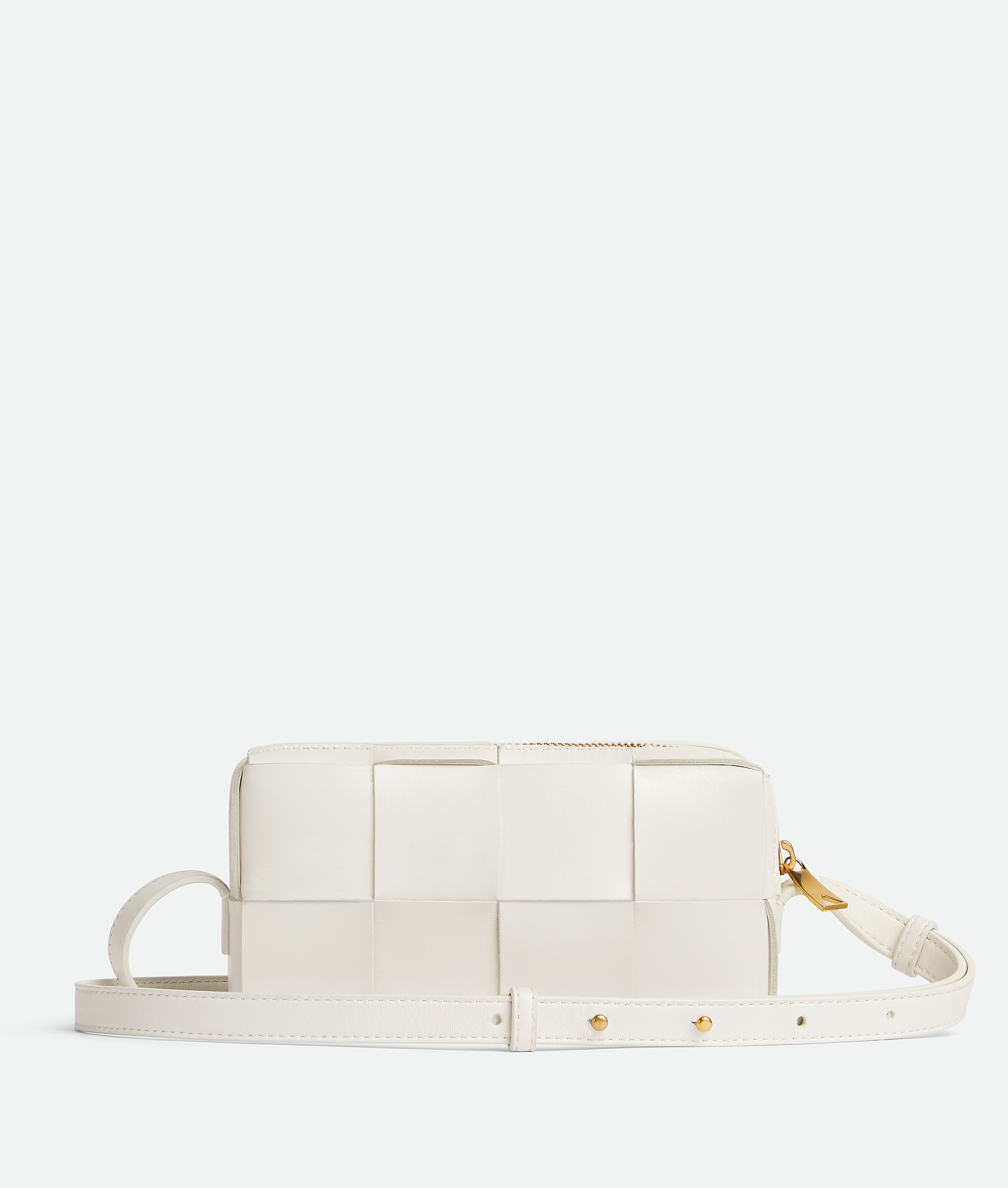 Top zip closure.Single compartment.Adjustable leather shoulder strap.Color: white.