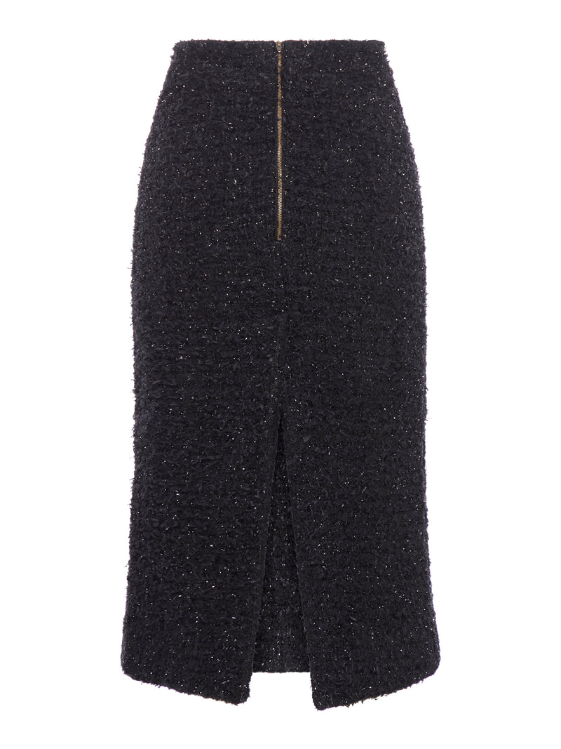 -Black cotton blend tweed midi skirt -Features a zip fastening at the back and a slit at the back -Regular fit