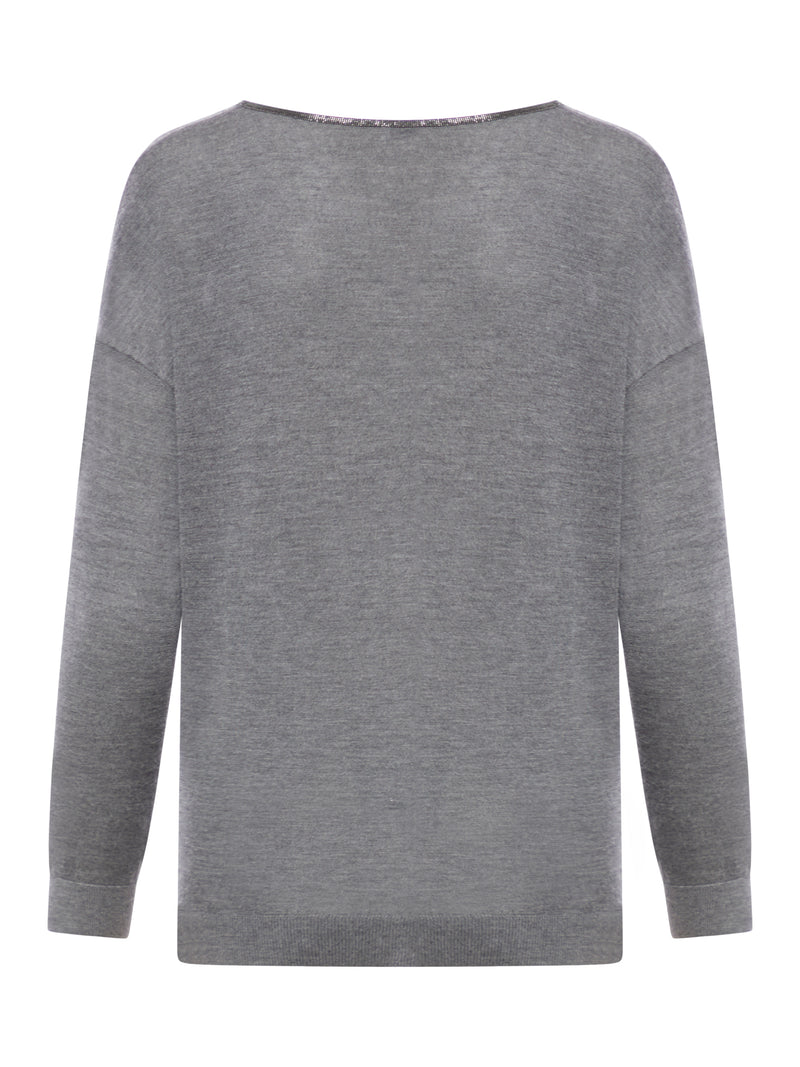 -cashmere and silk blend -fine knit -melange effect -characteristic Monili chain detail -wide neckline -sleeves with dropped shoulders -long sleeves -ribbed hem and cuffs