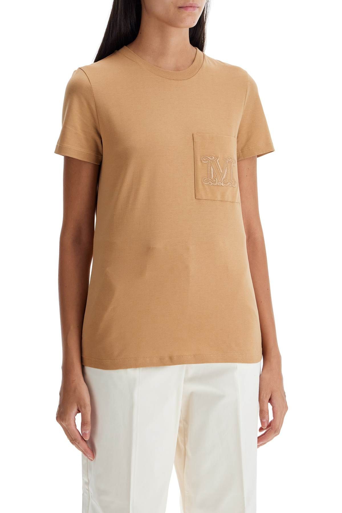 This Max Mara t-shirt is made of pure cotton jersey and features a monogram embroidery pocket on the chest