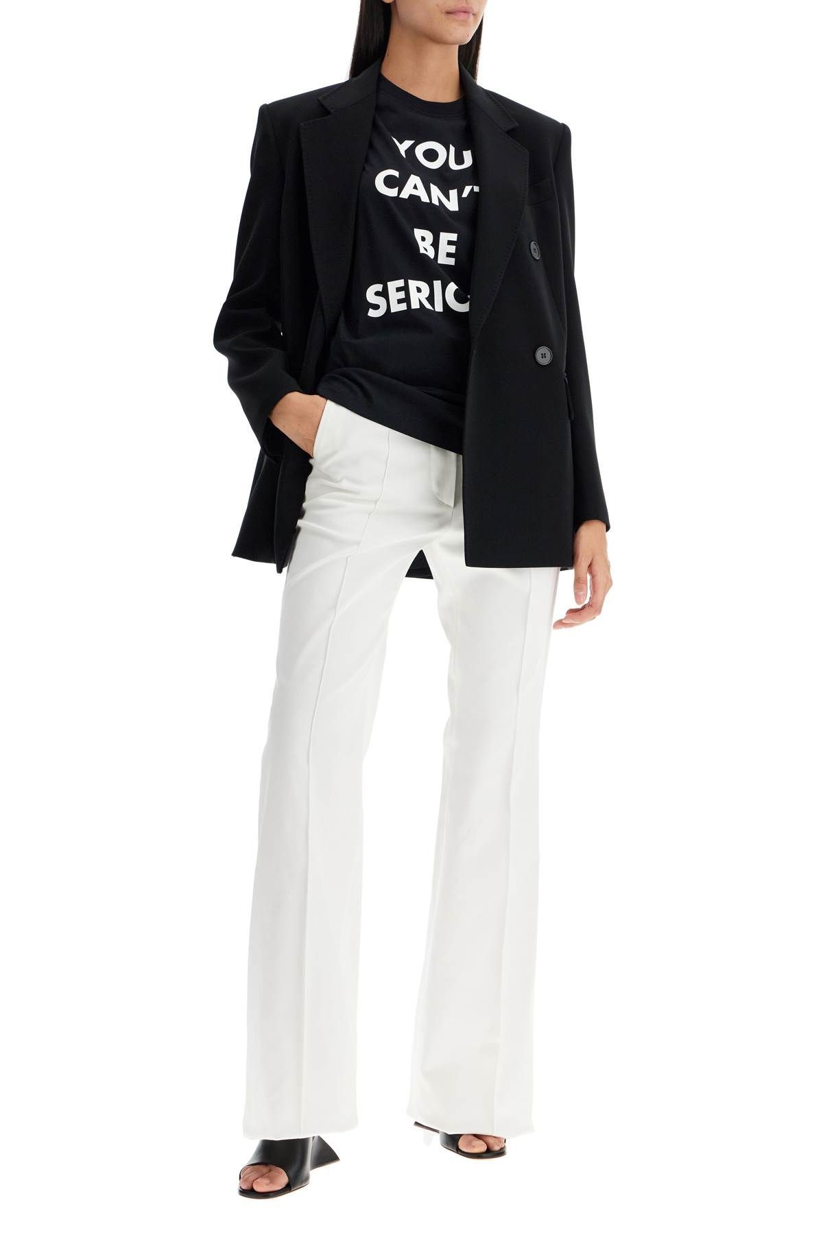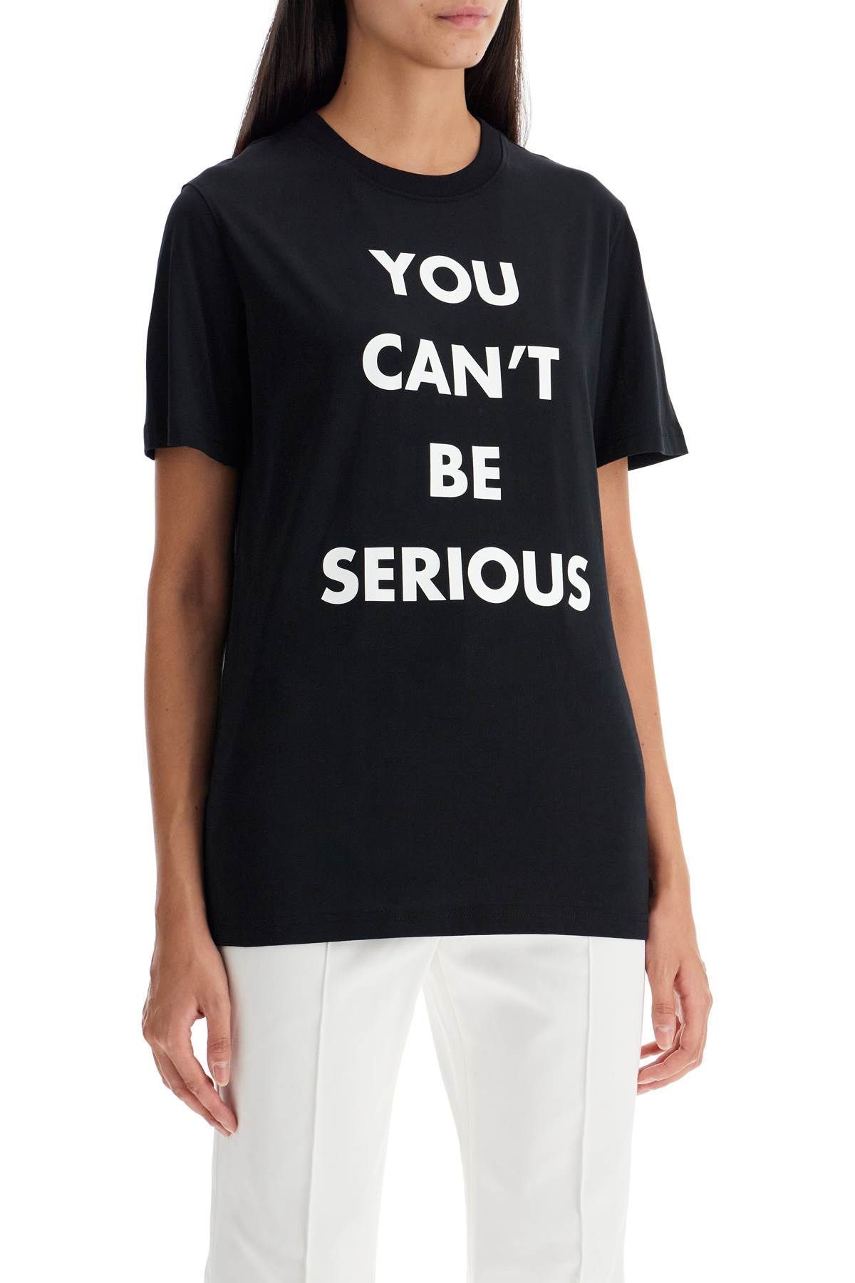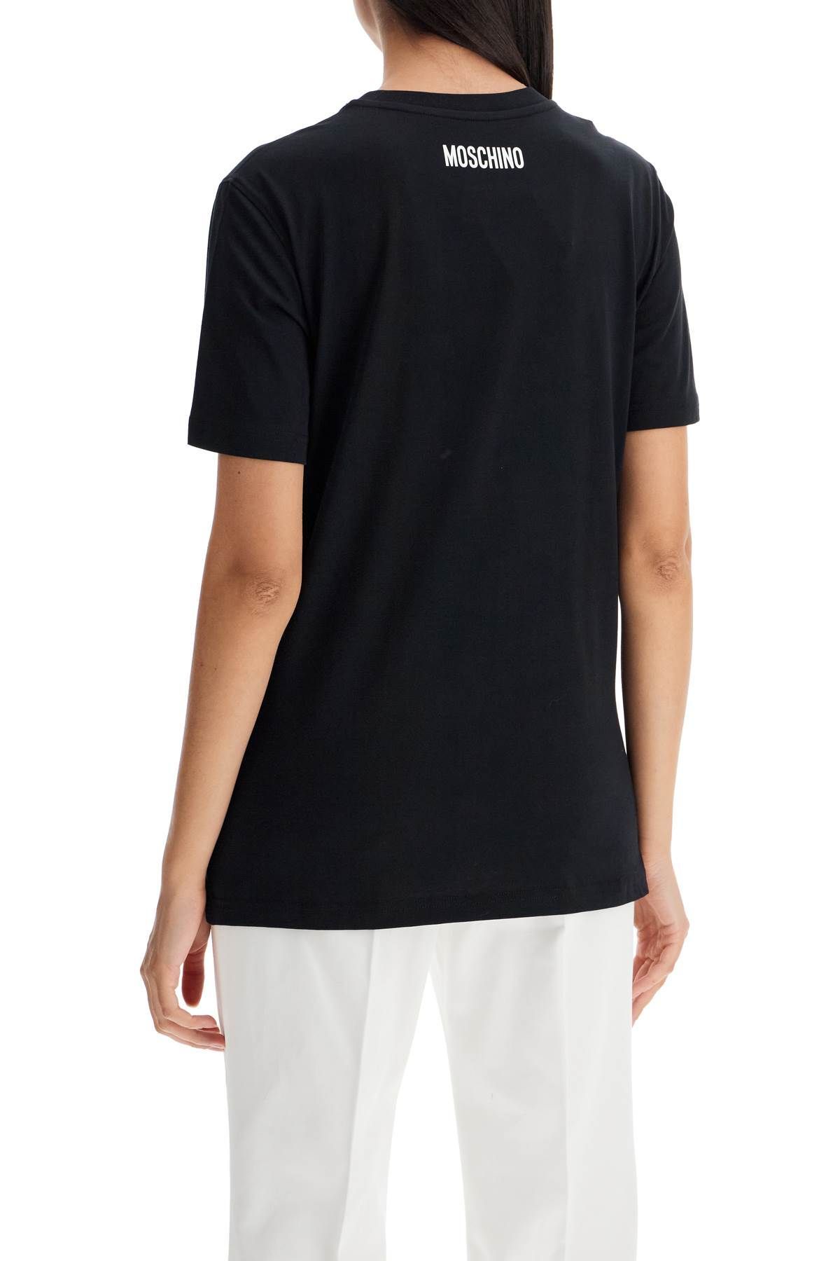 This Moschino crew neck t-shirt is made of cotton jersey with contrasting lettering print on the front and logo lettering printed on the back of the collar
