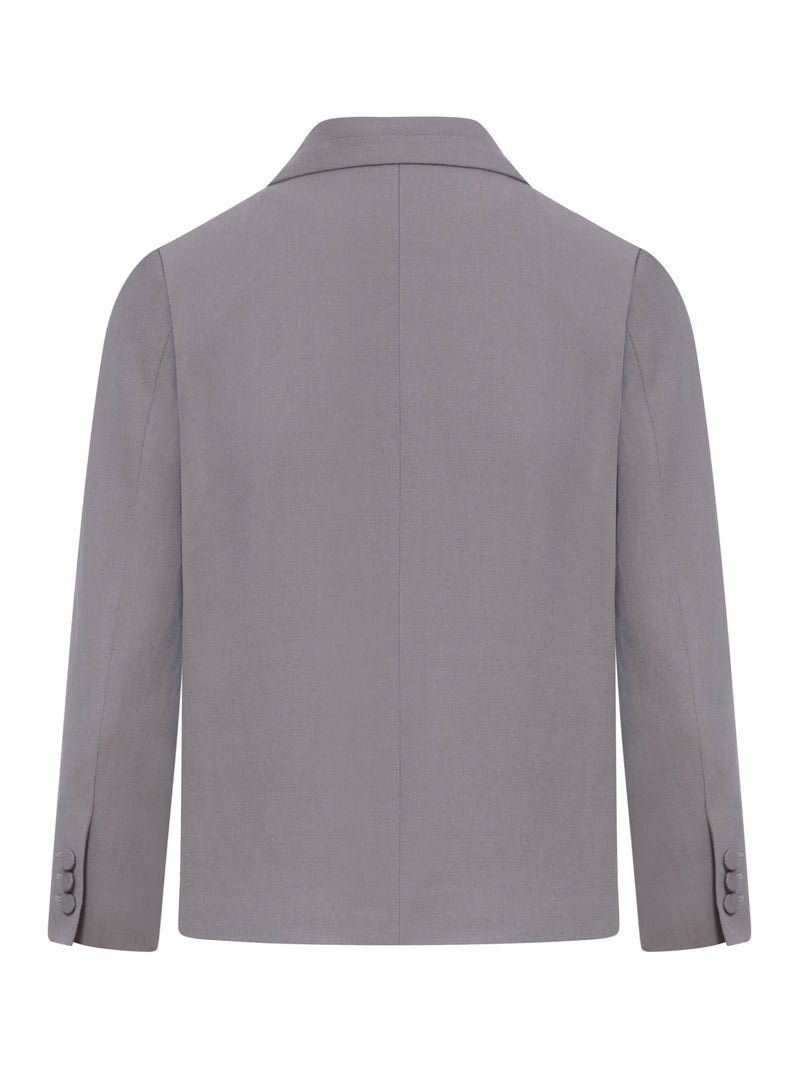 -classic lapel -front patch pockets -covered buttons -tone-on-tone stitching -buttoned cuff