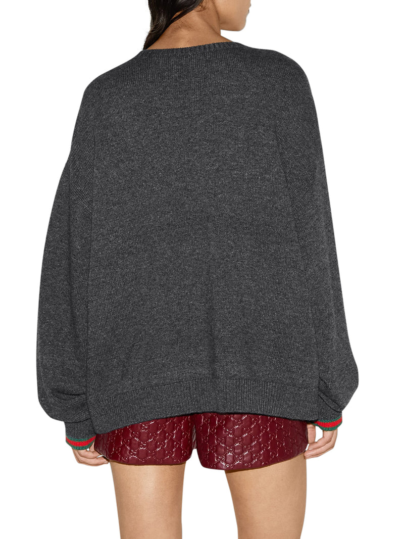 -Dark grey wool and cashmere -Crew neck -Drop shoulders -Web finishing on the cuffs -Ribbed finishing