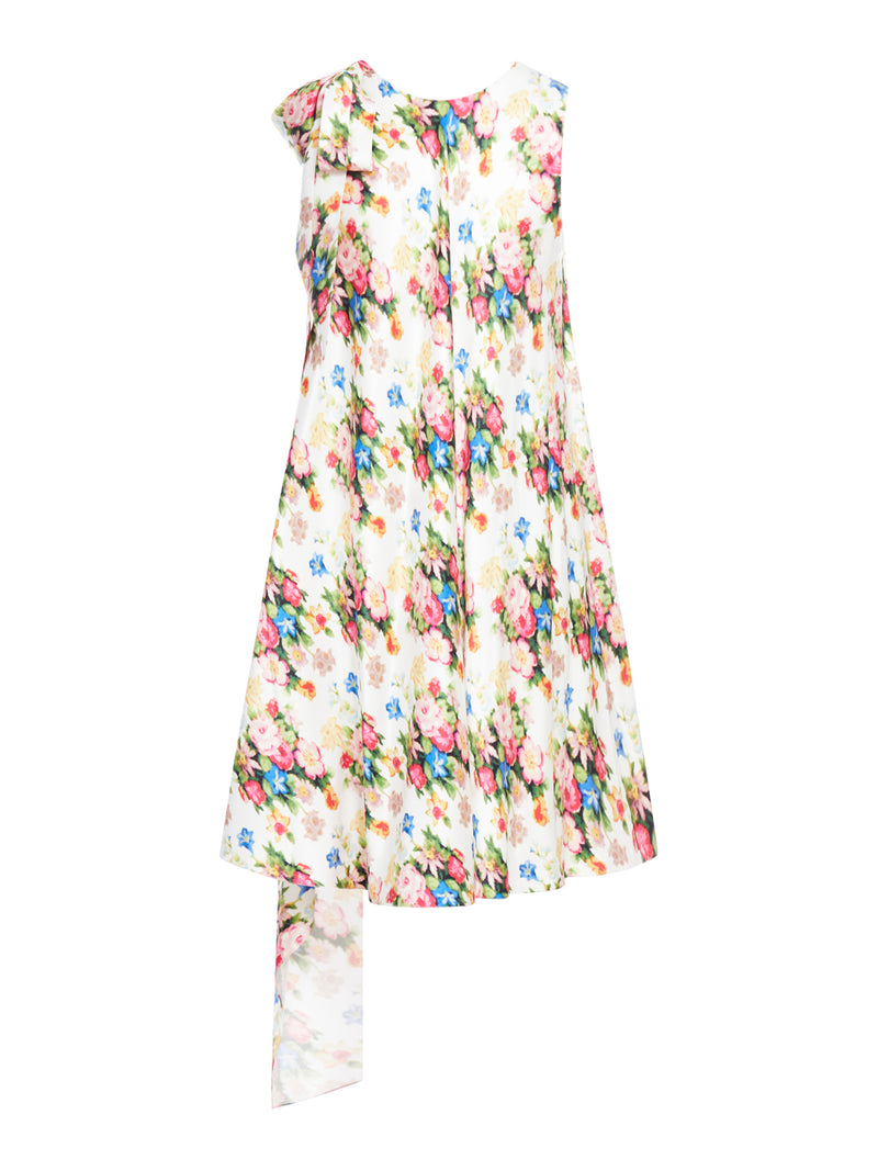 -multicolor -floral print -adjustable bow on the shoulder -asymmetrical hem