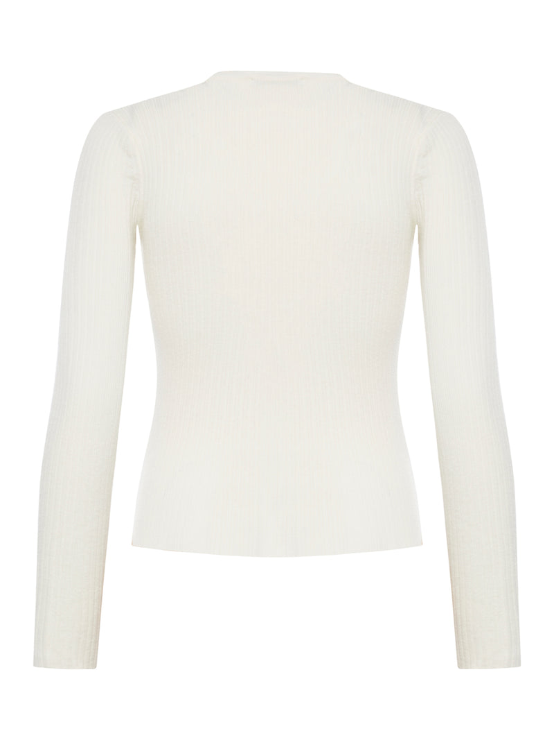 -Long-sleeved shirt -fine ribbed knit -fitted silhouette -V-neck