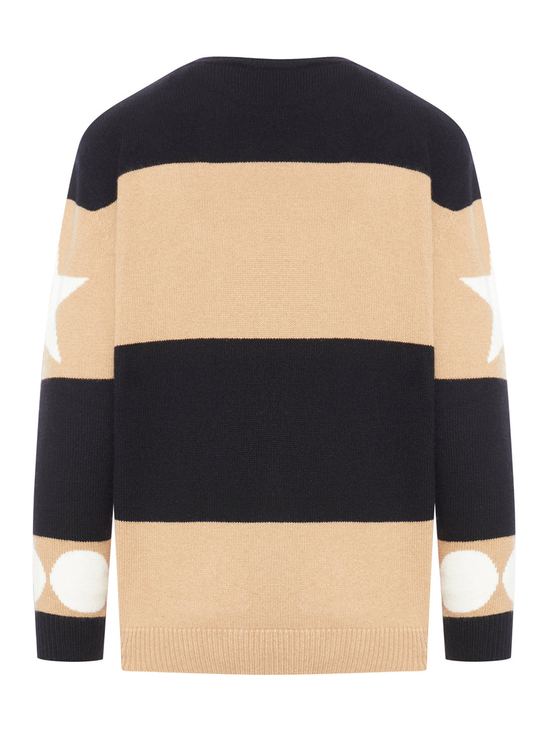 -Oversized crew neck sweater -Made from a premium blend of wool and cashmere -Iconic model customized with jacquard stripes -Placed designs and contrasting 1951 motif embroidered on the front -With a distinctive flocked texture -Completed with low set-in long sleeves and ribbed edges