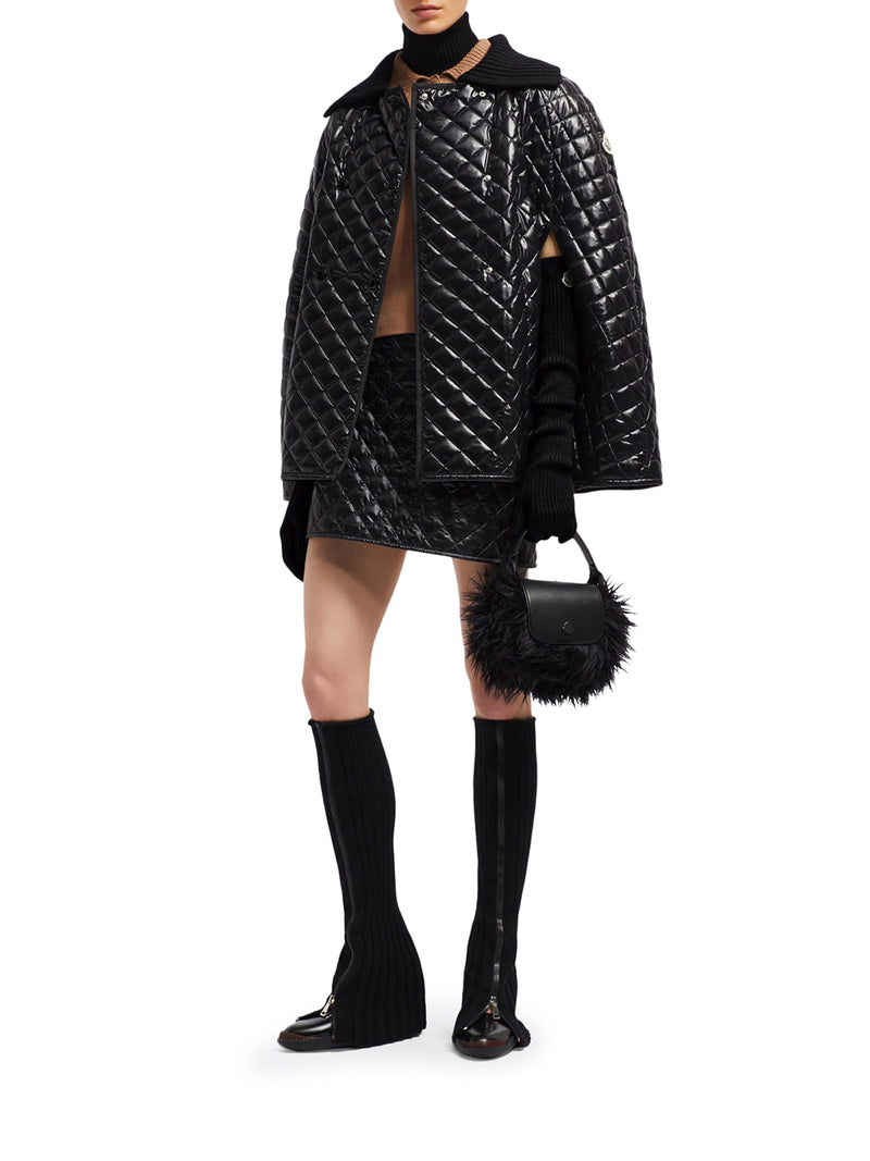 -Made of nylon laque -Nylon laque lining -Down padding -Knitted collar -Snap button closure