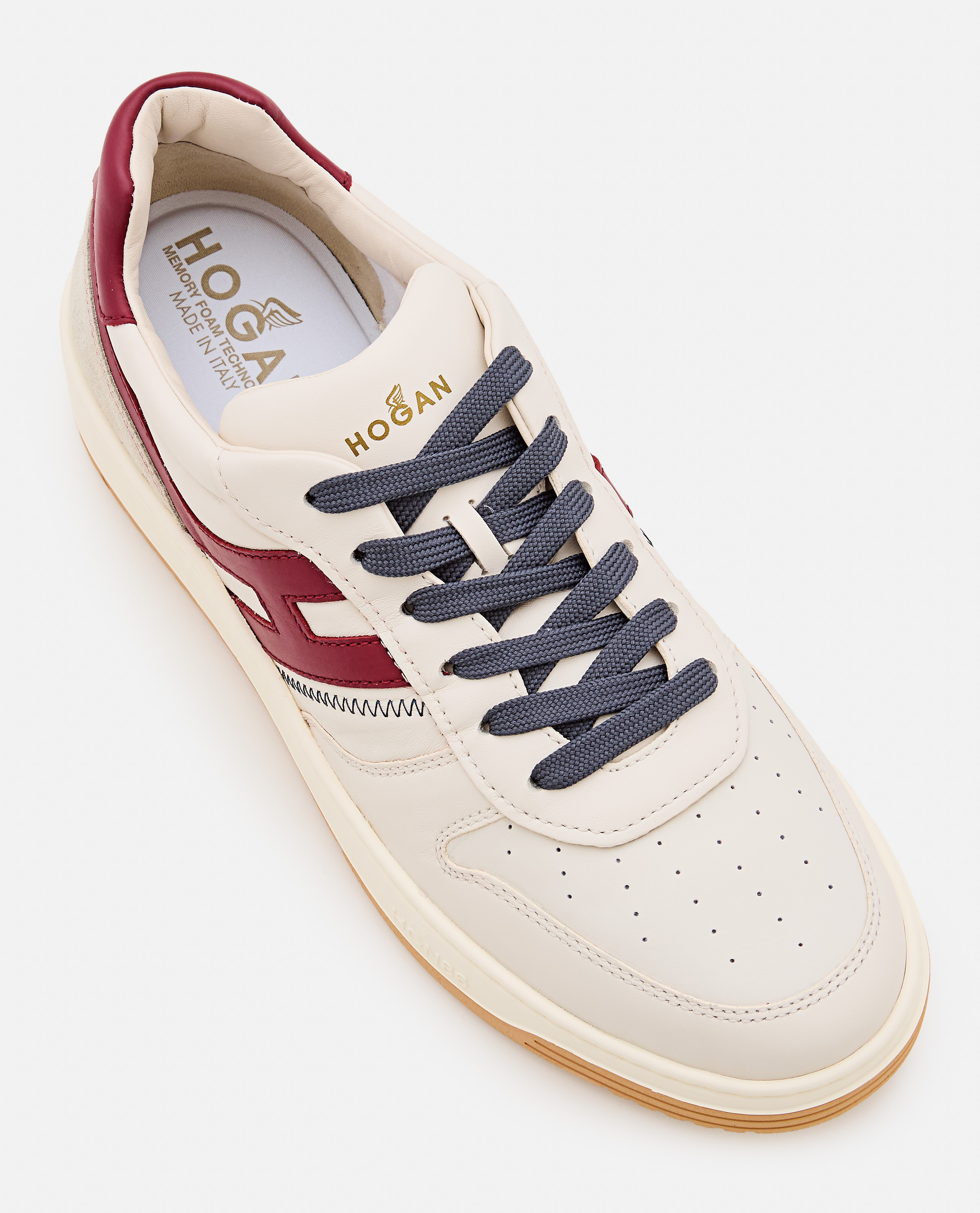 Smooth leather upper.Suede leather inserts.Smooth leather side H.9 mm memory foam footbed.Rubber sole.Total height 3.8 cm.Color: white.
