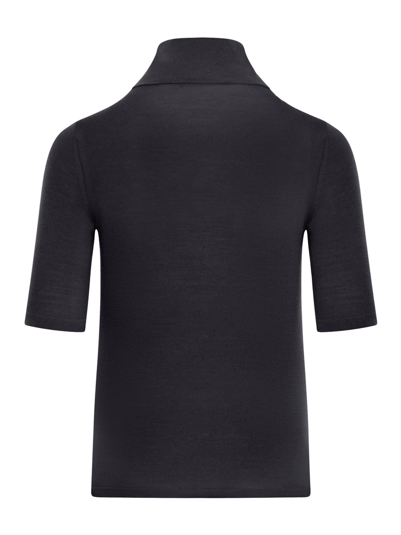 -Turtleneck sweater in fine pure wool yarn, -Worked in stocking stitch -High neck -Short set-in sleeves -Black