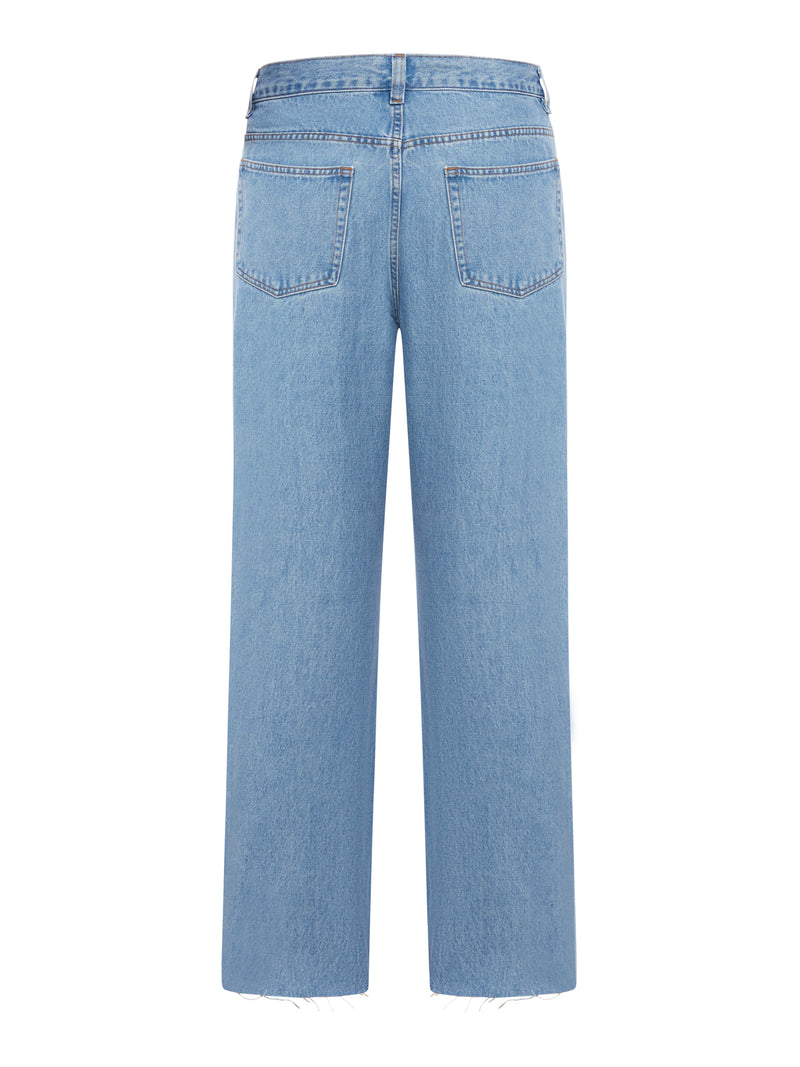 -light blue -cotton -denim -contrast stitching -straight leg -mid-rise -fly and hidden button closure -belt loops -classic five-pocket -raw cut hem