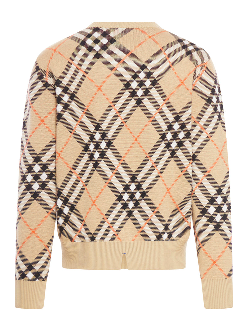 - Lightweight wool and mohair blend sweater with knitted Burberry Check - Ribbed trims - Relaxed fit: a looser fit than the regular fit