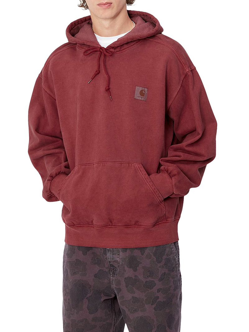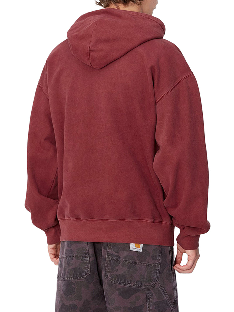-heavy cotton jersey -loose, balloon fit -dropped shoulders -ribbed hems -faded yet rich hue -large, adjustable, quilted hood