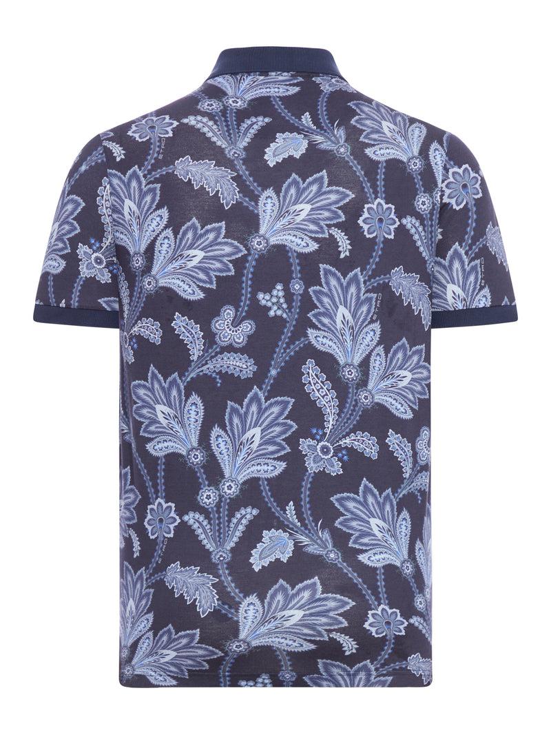 -classic collar -blue cotton botanical print -button fastening -embossed logo on the back -short sleeves -straight hem