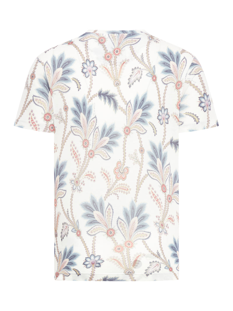 -cream white -flower print -crew neck -short sleeves -straight hem