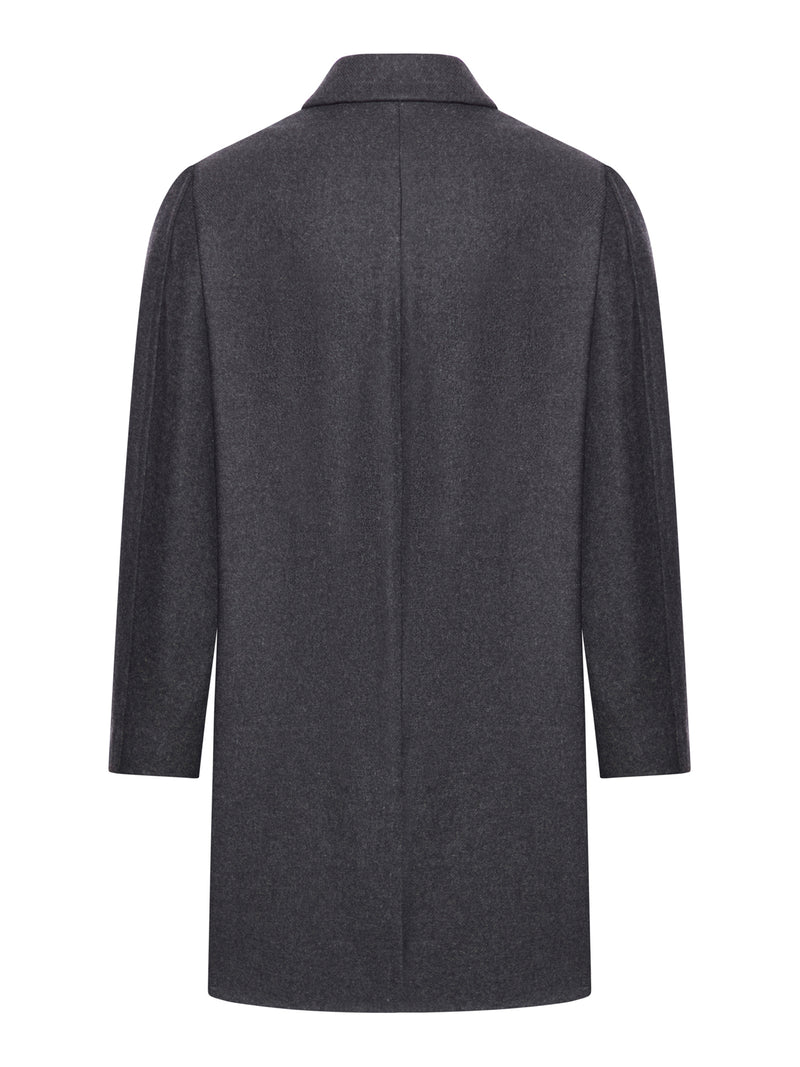 -hidden front buttoning -wool and cashmere fabric -side welt pockets -back slit -metal hook