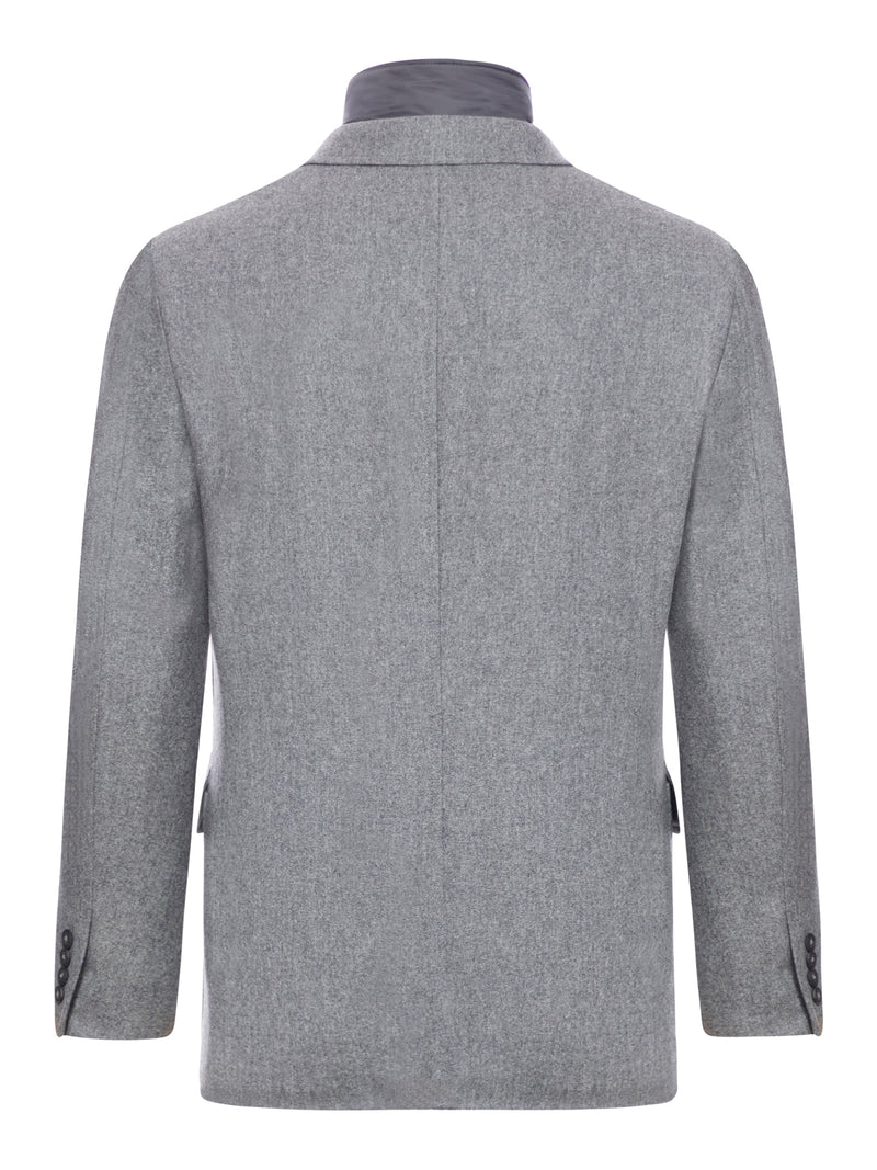 -classic collar -classic lapels -chest pocket -two patch pockets with flap -single-breasted closure -buttoned cuffs -removable inner vest -straight hem