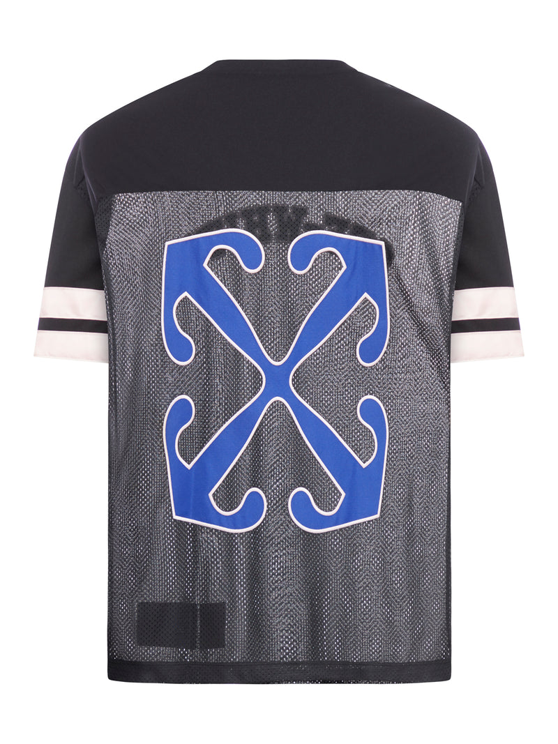 -front and back logo -V-neck -transparent mesh fabric -short sleeve -oversized fit