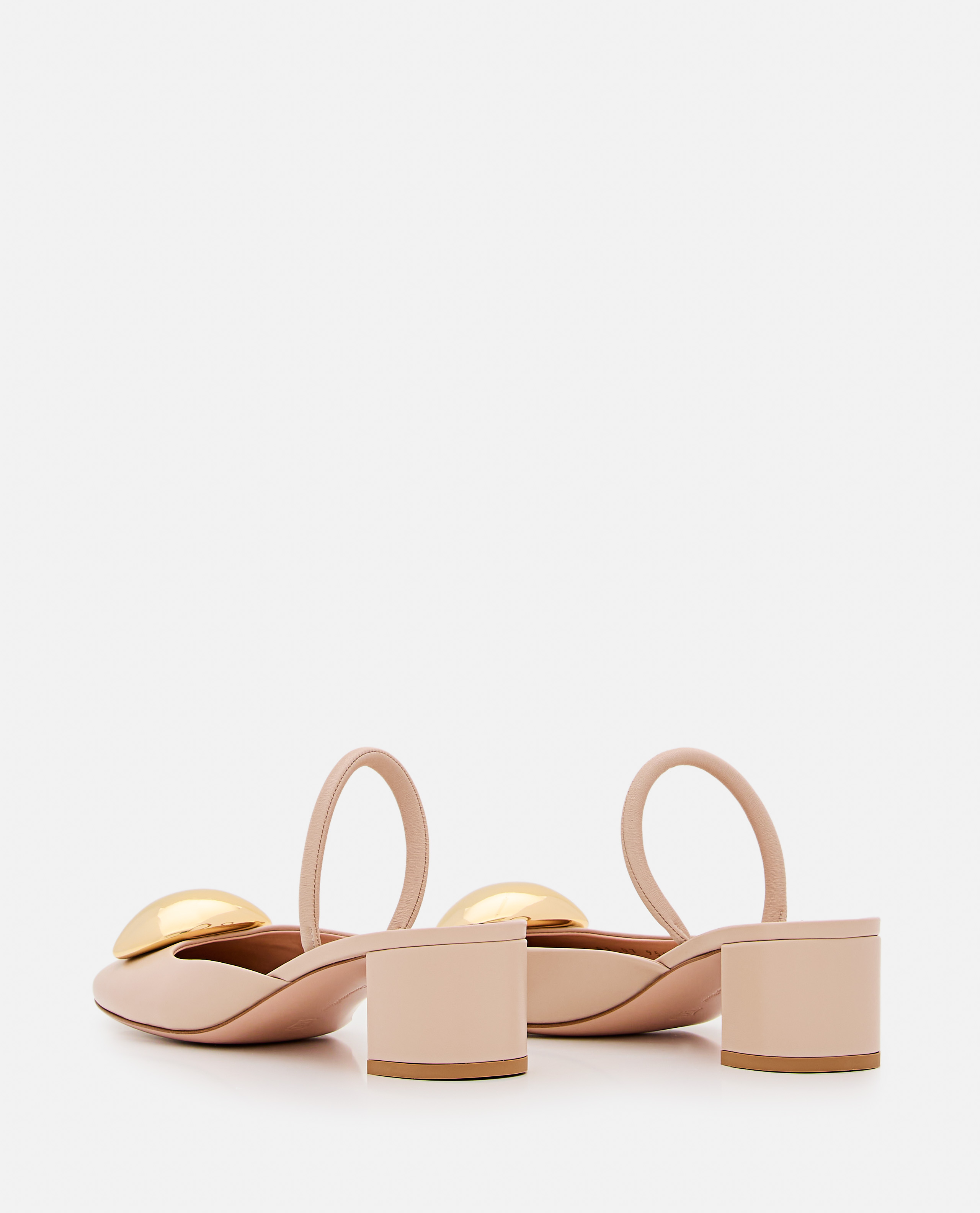 Rounded toe. Leather upper.Leather sole and insole. Metal front detail.Color: beige.