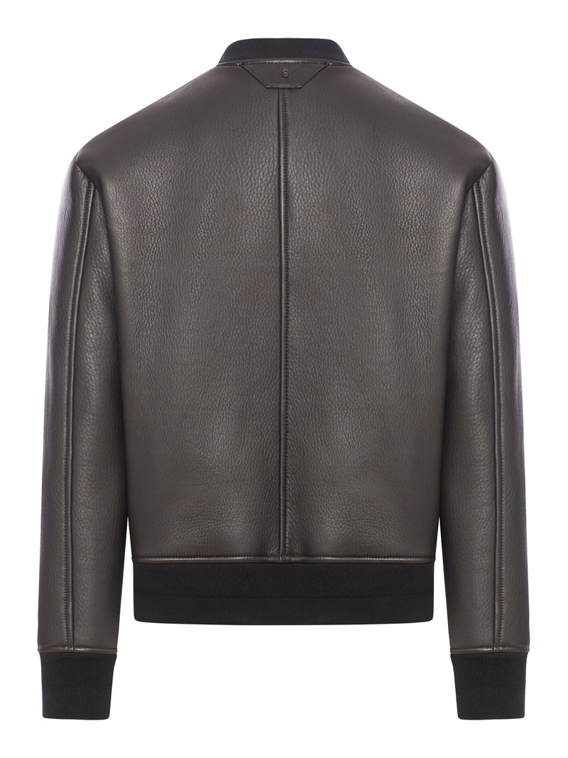 -elastic collar, hem and cuffs -zip side pockets -hammered leather