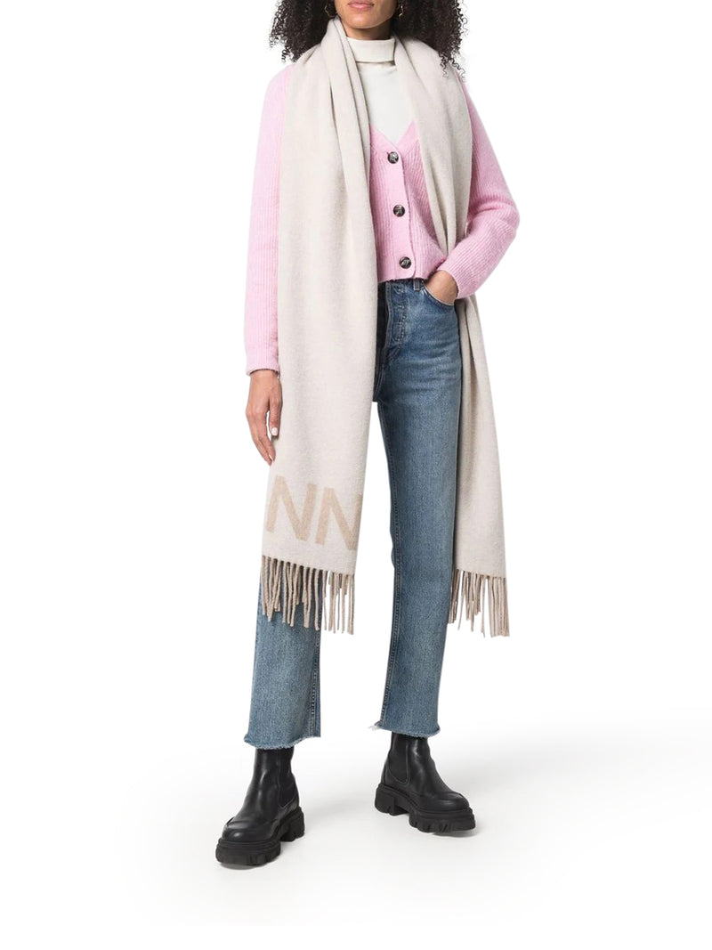 - Fringed scarf - Fine knit - 90% recycled polyester 10% wool