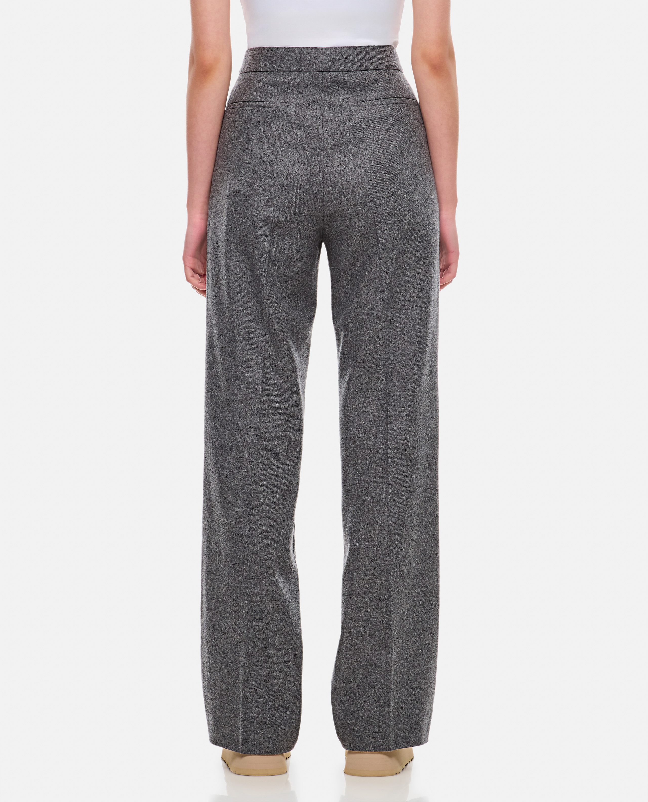 Frontal buttons closure. Frontal pleats. Color: grey.