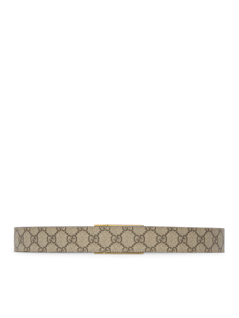 -Beige and ebony GG Supreme fabric -Shiny gold-tone hardware -Rectangular buckle with Gucci engraving -Width: 3.5 cm