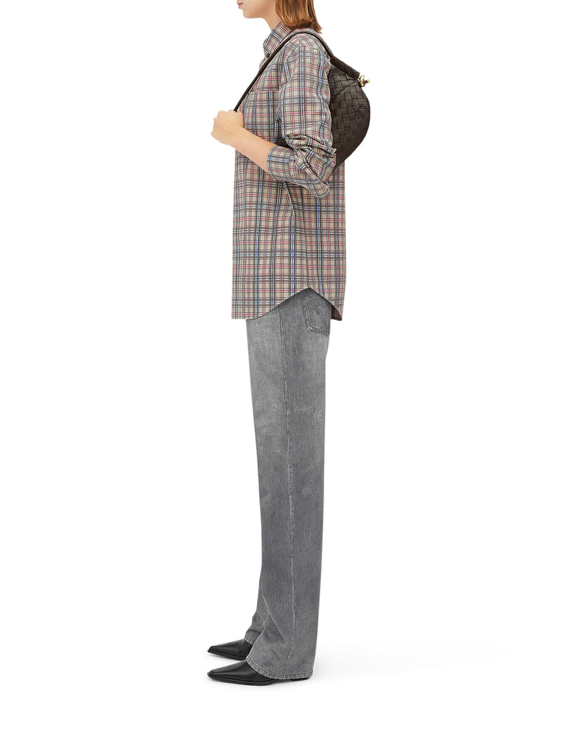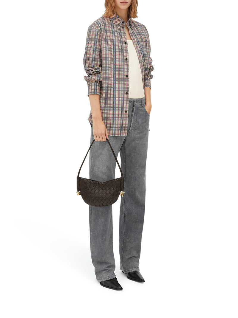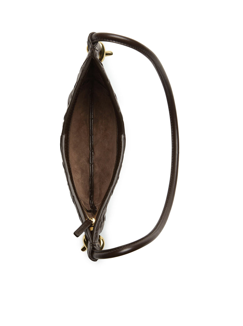 ? Mini shoulder bag in leather with Intrecciato motif ? One main compartment ? Zip closure Material: Lambskin ? Interior: Lined suede ? Colour: Fondant ? Hardware: Brass finish ? Height: 18 cm ? Width: 28 cm ? Depth: 5 cm ? Handle drop: 25 cm