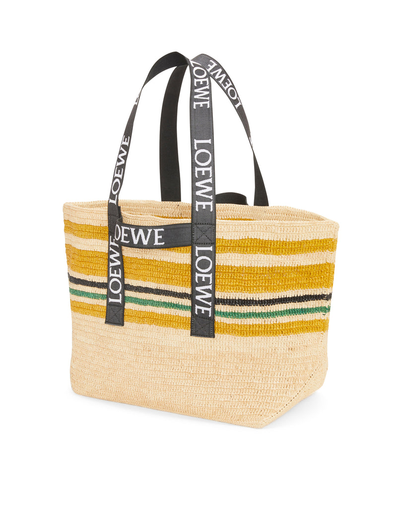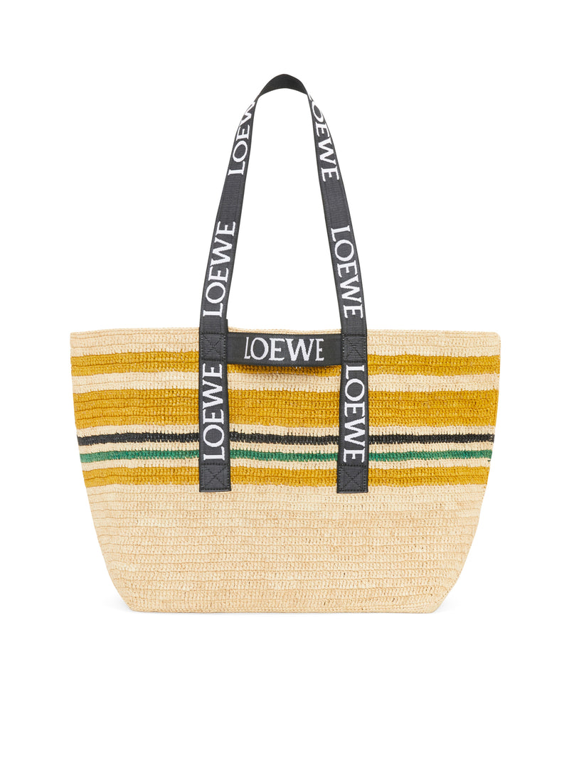 -The Fold Shopper is a versatile, lightweight bag with double signature handles. The bag can be folded at the base, making it ideal for travel. This version is crafted from striped raffia. -Carry on the shoulder or with the top handle -Suitable for a 13-inch laptop -Unlined