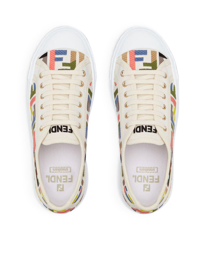 -Domino sneakers -rubber sole -Made of canvas with color block FF embroidery -Features a white sole with contrasting base -features a combination of embossed textures -overlapping FF motif on the toe and FENDI Roma logo on the heel
