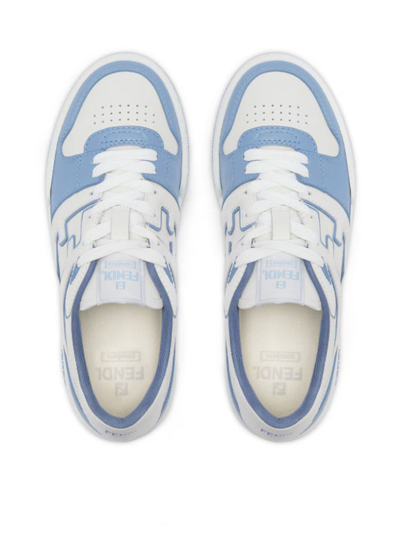 -Fendi Match lace-up sneaker -Made of light blue leather with white leather details -Rubber sole with Fendi lettering on the side