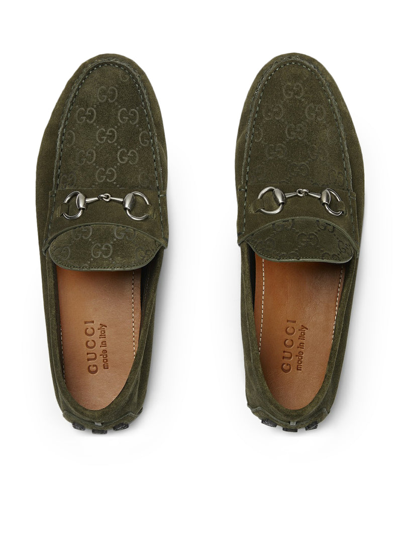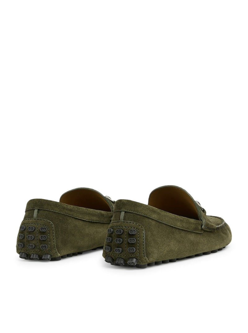 -Green suede -Silver-tone hardware -Clamp -Rubber sole with nubs -Low-cut model