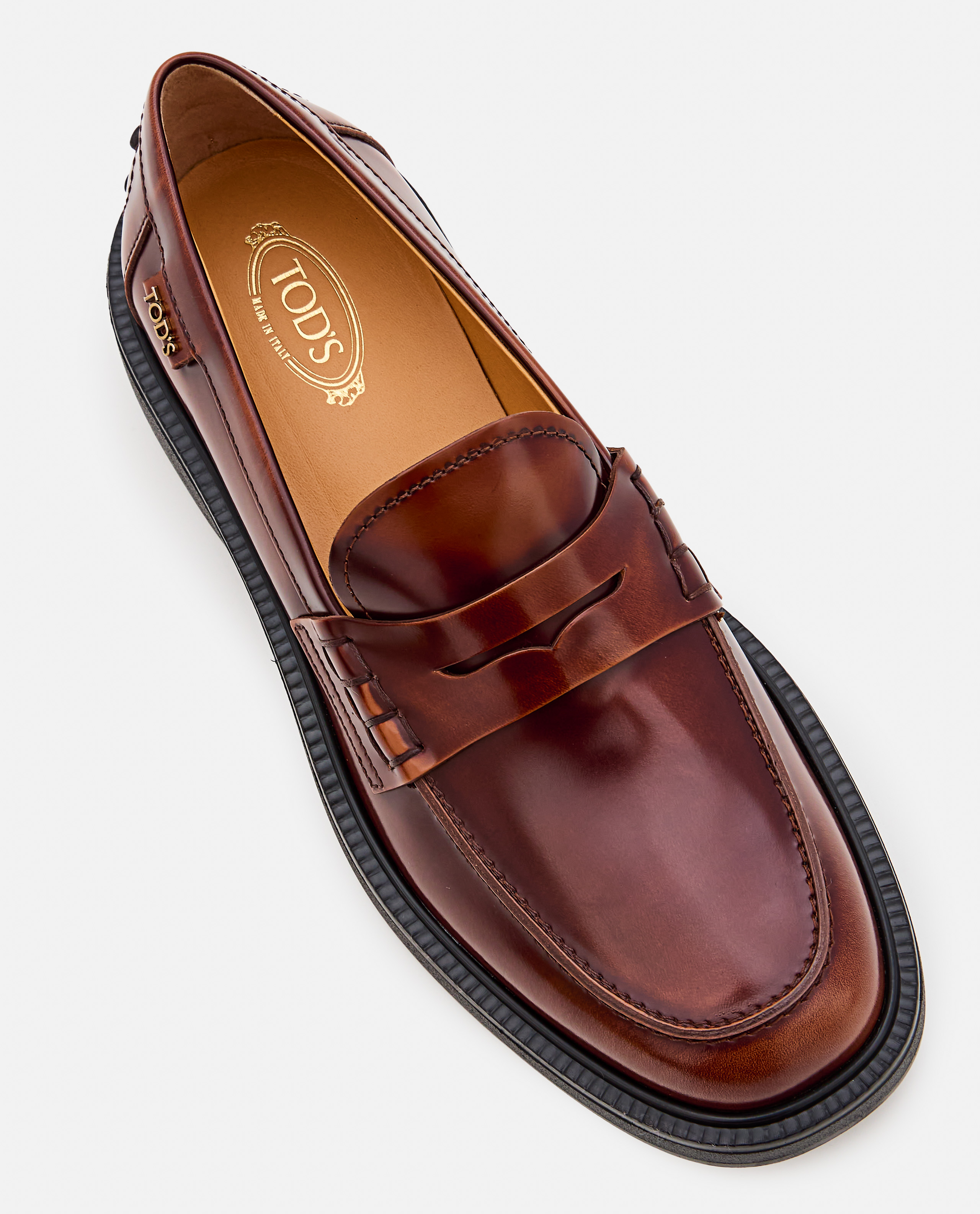 Leather upper.Rubber sole.Rounded toe.Color: brown.